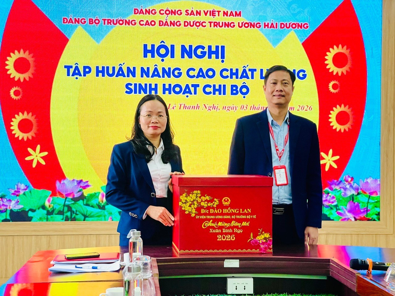 Nhân dịp Tết Nguyên đán Bính Ngọ 2026, Đồng chí Đào Hồng Lan - Ủy viên Trung ương Đảng, Bộ trưởng Bộ Y tế đã gửi tặng quà và những lời chúc mừng tốt đẹp đến tập thể cán bộ, viên chức, người lao động, học sinh, sinh viên của Trường Cao đẳng Dược Trung ương Hải Dương.