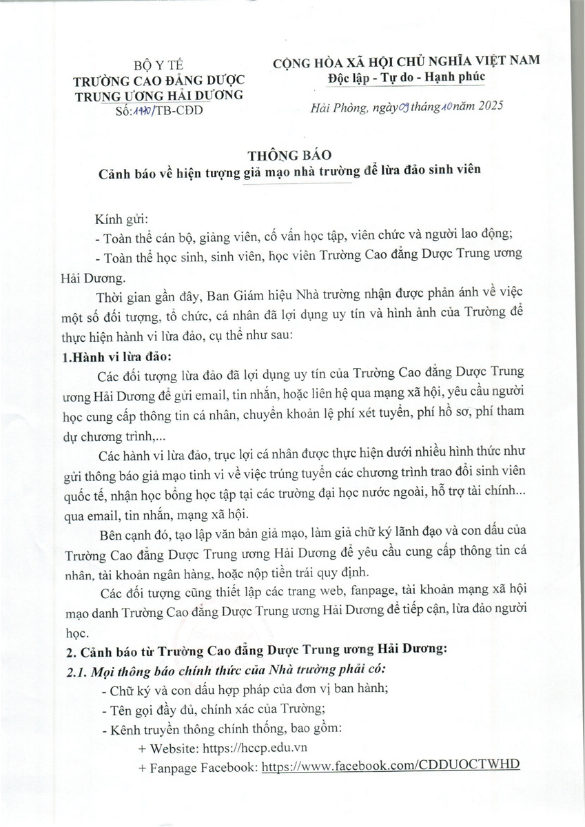 CẢNH BÁO VỀ HIỆN TƯỢNG GIẢ MẠO NHÀ TRƯỜNG ĐỂ LỪA ĐẢO SINH VIÊN