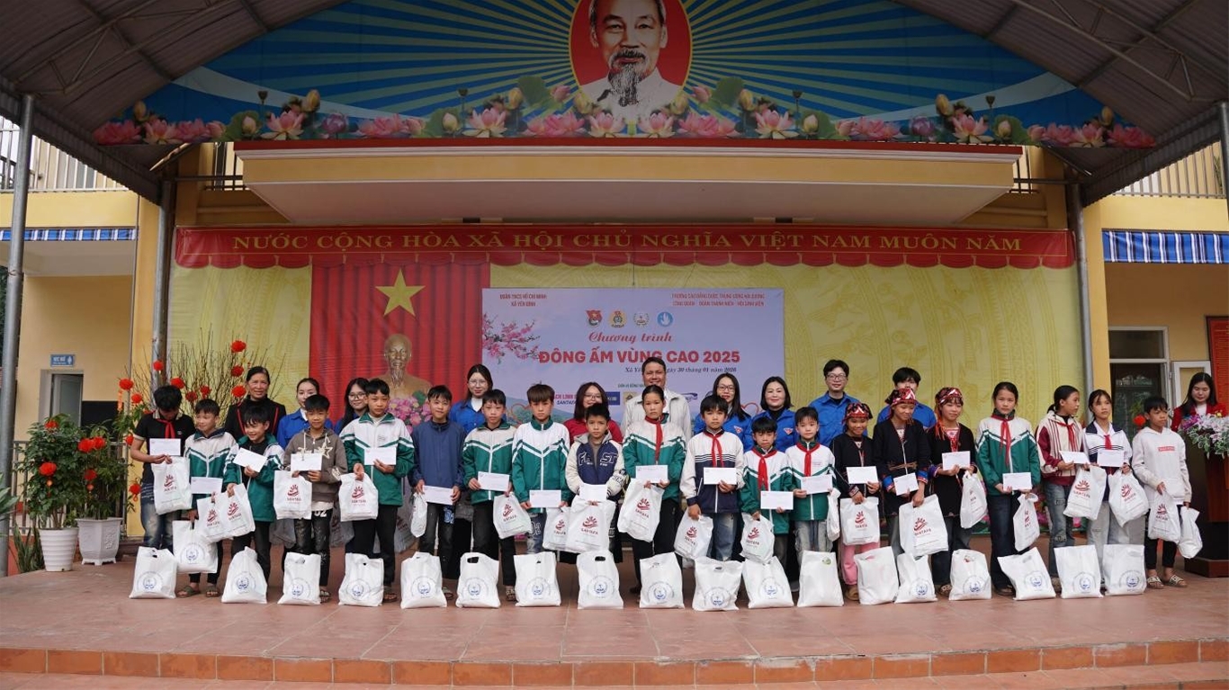 Từ ngày 30 đến 31/01/2026, Công đoàn, Đoàn thanh niên, Hội Sinh viên trường Cao đẳng Dược Trung ương Hải Dương đã phối hợp tổ chức thành công chương trình tình nguyện “Đông ấm vùng cao” tại xã Yên Bình, tỉnh Lào Cai.