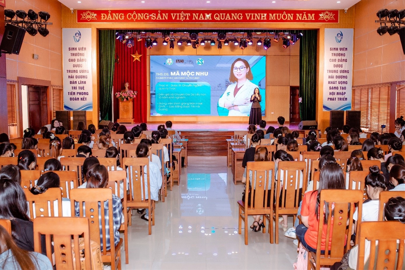Ngày 24/9/2024, tại Hội trường tầng 6, Trường Cao đẳng Dược Trung ương Hải Dương đã phối hợp với Công ty TNHH 2N Clinic and Academy và Công ty TNHH MD CARE Việt Nam tổ chức chương trình tư vấn hướng nghiệp cho sinh viên.