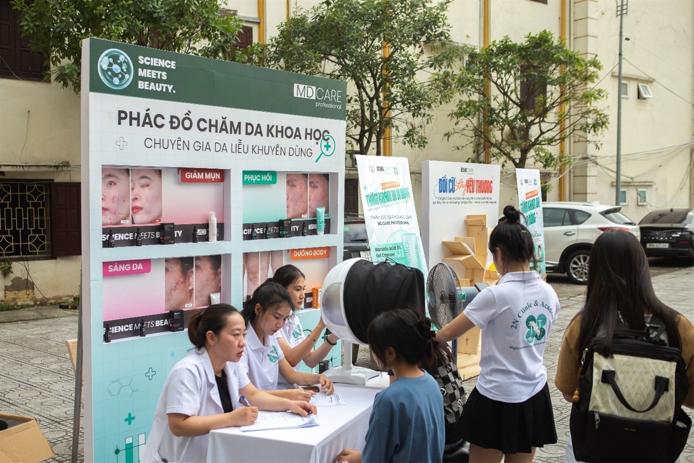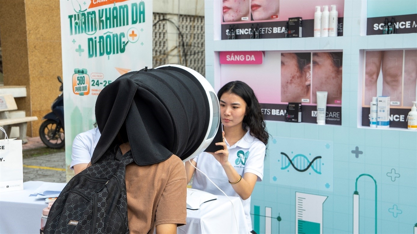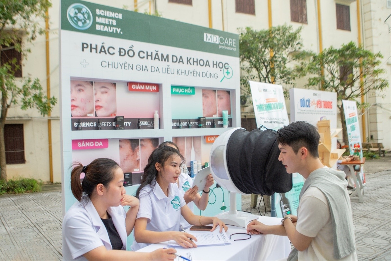 Các bạn sinh viên được thăm khăm da, soi da miễn phí