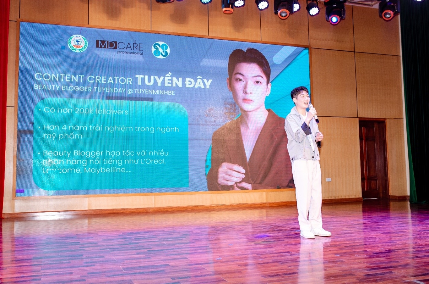 Tham gia cùng chương trình còn có Beauty Blogger Tuyền Đây (Bế Minh Tuyền). Tuyền đã mang đến cho các bạn sinh viên có cái nhìn sâu sắc về tiềm năng và cơ hội rộng mở trong lĩnh vực dược mỹ phẩm, những hướng đi mới trong ngành học cũng như cơ hội việc làm đầy triển vọng.