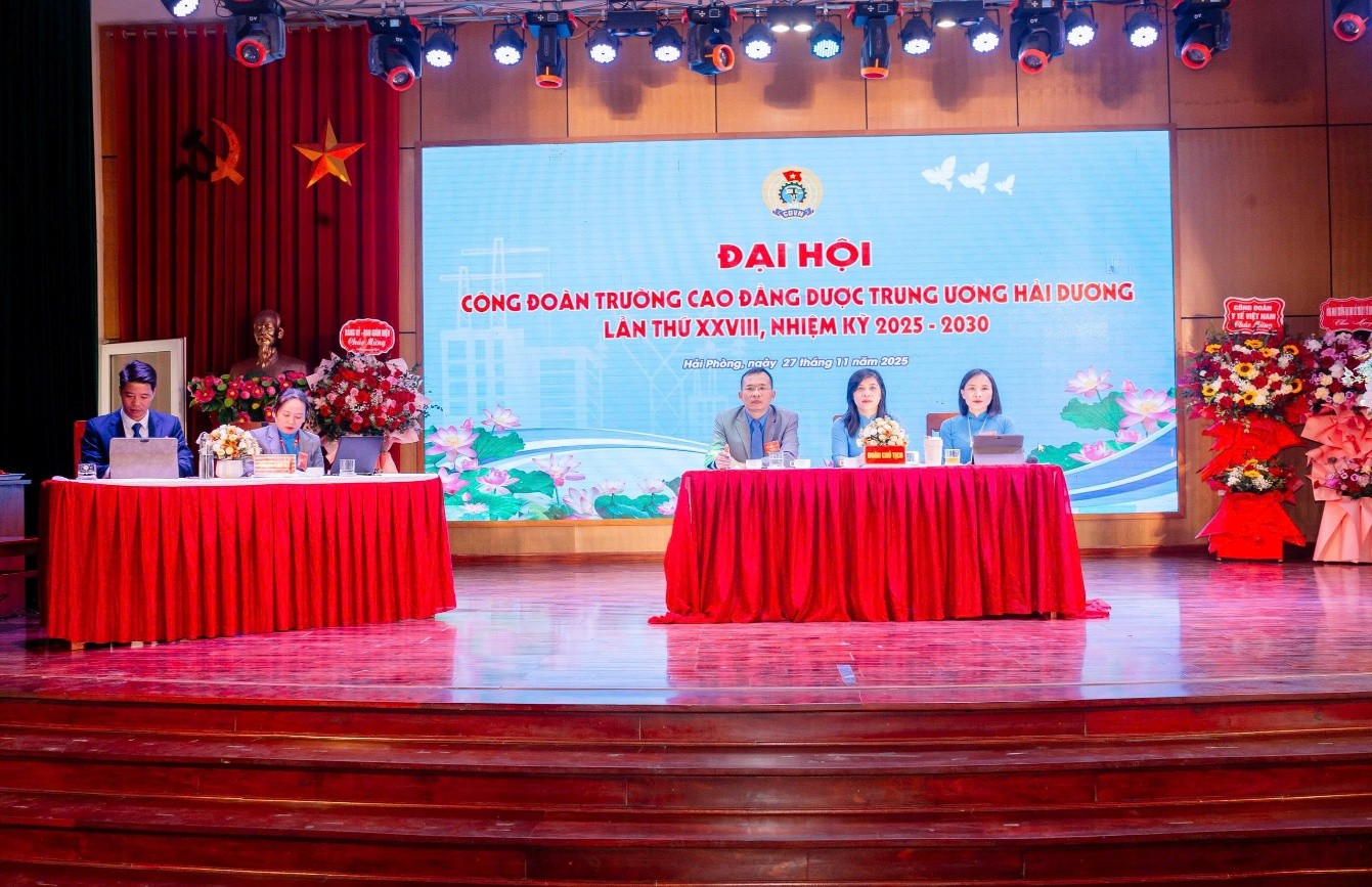 Ngày 27 tháng 11 năm 2025, Công đoàn Trường Trường Cao đẳng Dược Trung ương Hải Dương đã long trọng tổ chức Đại hội Công đoàn Trường lần thứ thứ XXVIII, nhiệm kỳ 2025 - 2030. Đây là đợt sinh hoạt chính trị quan trọng, thể hiện ý chí, nguyện vọng và tinh thần trách nhiệm của đoàn viên, viên chức, người lao động trong việc đánh giá toàn diện kết quả hoạt động công đoàn nhiệm kỳ 2023 - 2028 và xây dựng phương hướng nhiệm kỳ 2025 - 2030
