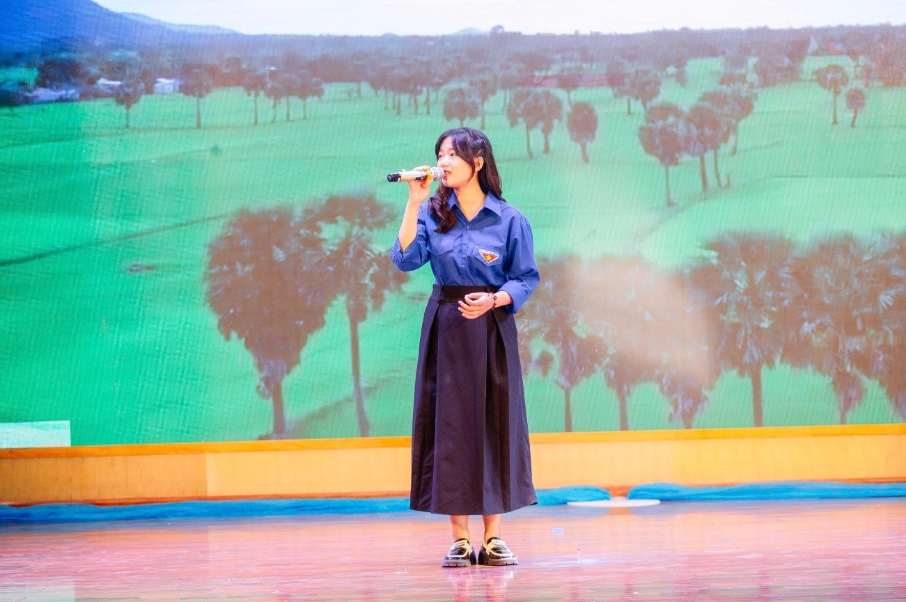 Đồng chí Đinh Thị Ngọc Bích - Chủ tịch Công đoàn trường khóa XXVII trình bày báo cáo tổng kết hoạt động Công đoàn nhiệm kỳ 2023 - 2028 và phương hướng, nhiệm vụ nhiệm kỳ 2025 - 2030