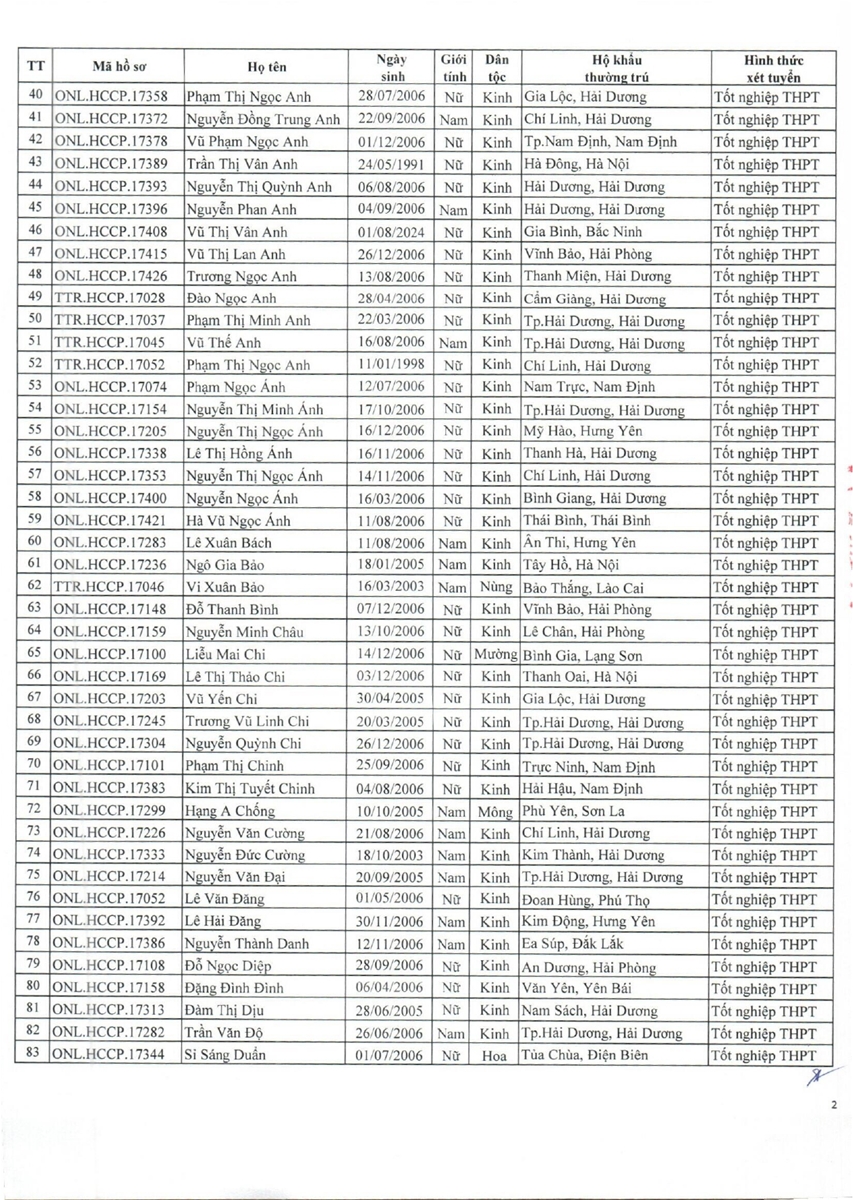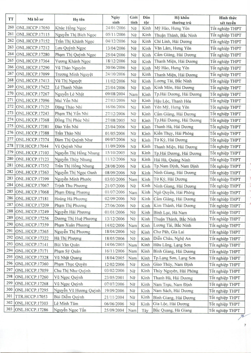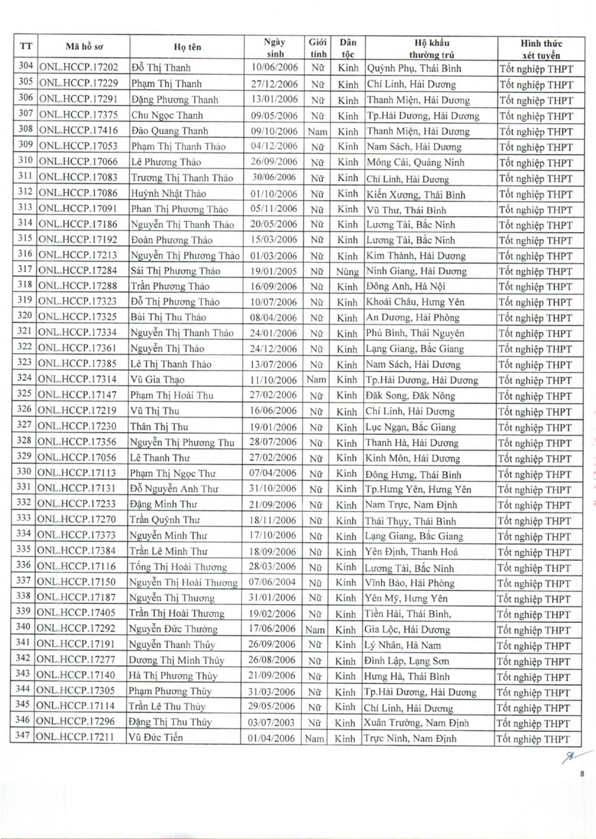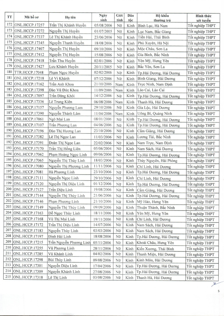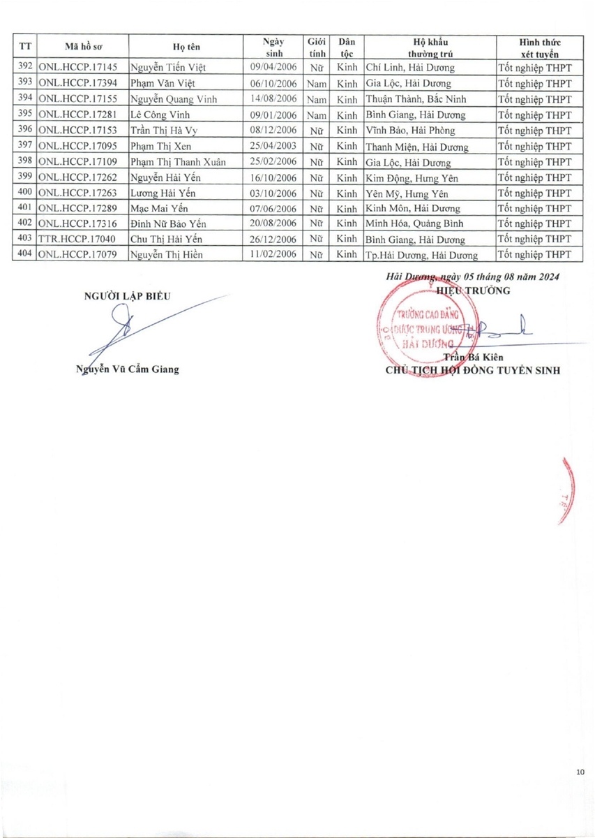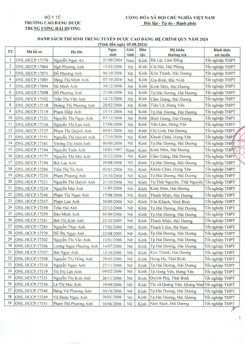 DANH SÁCH THÍ SINH TRÚNG TUYỂN DƯỢC CAO ĐẲNG HỆ CHÍNH QUY NĂM 2024