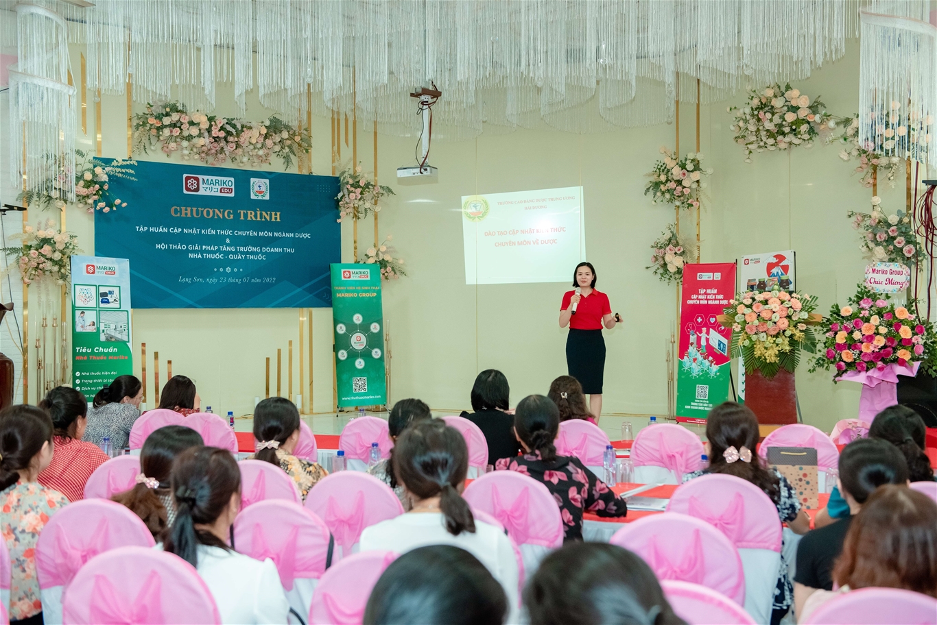 Tới dự khai mạc và bế mạc, về phía Nhà trường có Ths. Nguyễn Thị Thanh Nhài – Phó Hiệu trưởng Nhà trường và các giảng viên giảng dạy của Trường Cao đẳng Dược Trung ương Hải Dương; về phía công ty Mariko group có ông Phạm Văn Tuấn, Lê Thị Vân Khánh Phó Tổng Giám đốc Công ty và các cán bộ Công ty Mariko group cùng toàn thể các học viên là cán bộ dược tại Huyện Bắc Sơn, Huyện Bình Gia tỉnh Lạng Sơn.