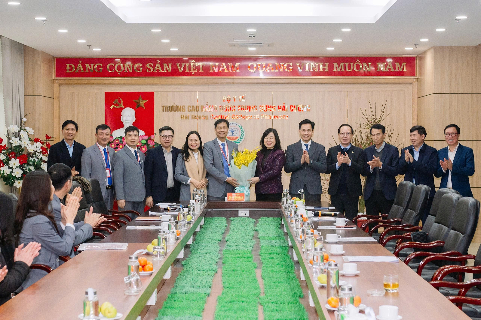 Ngày 08 tháng 02 năm 2026, Đồng chí Đào Hồng Lan - Ủy viên BCH Trung ương Đảng, Bộ trưởng Bộ Y tế cùng đoàn công tác gồm lãnh đạo các Vụ, Cục, Văn phòng Bộ và lãnh đạo Sở Y tế Hải Phòng đã có chuyến thăm, làm việc và chúc Tết tập thể trường Cao đẳng Dược Trung ương Hải Dương nhân dịp Xuân Bính Ngọ 2026.
