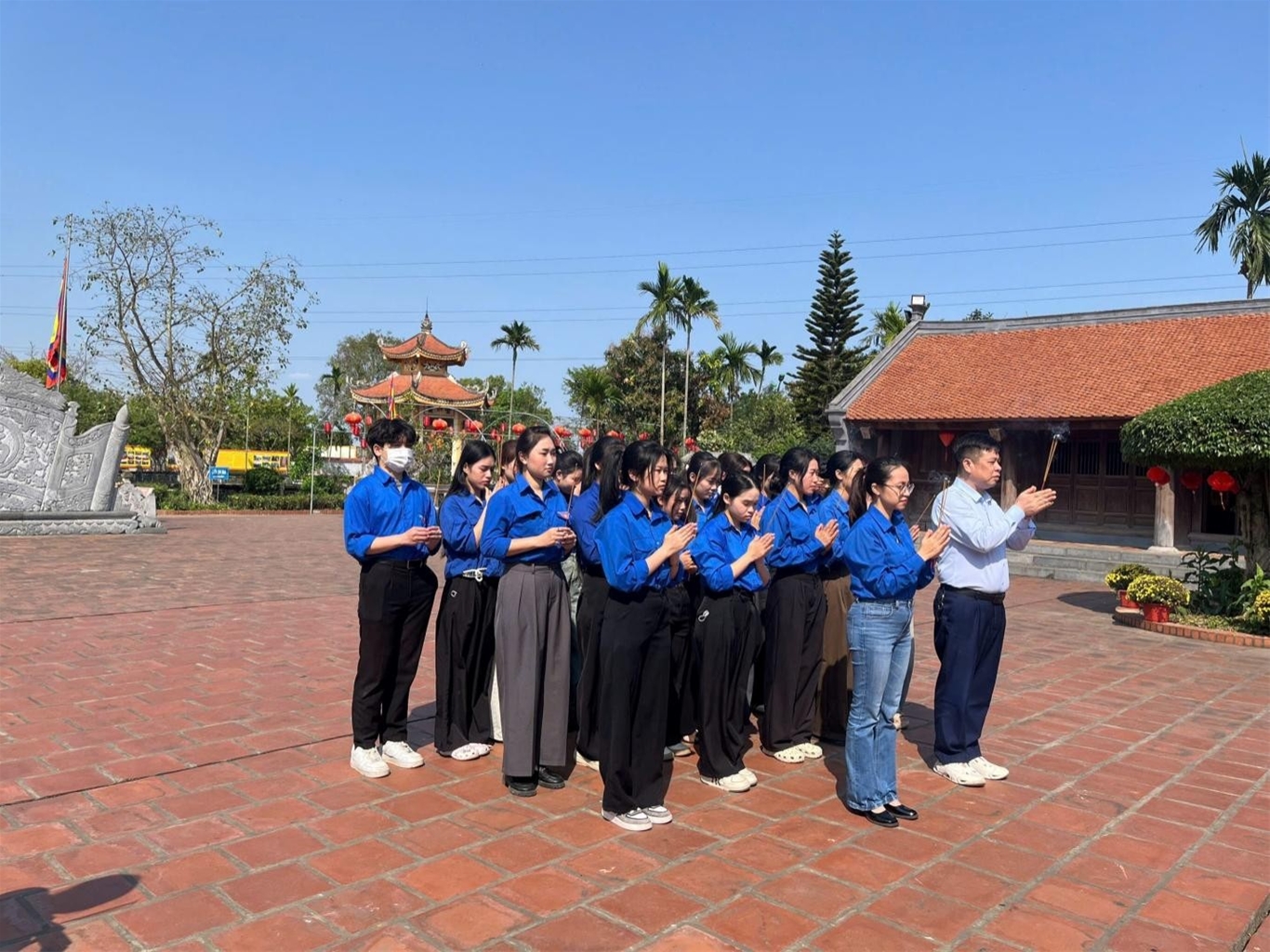 Thầy Bùi Xuân Khoa - Phó Hiệu trưởng cùng đoàn tình nguyện dâng hương tại Đền Bia