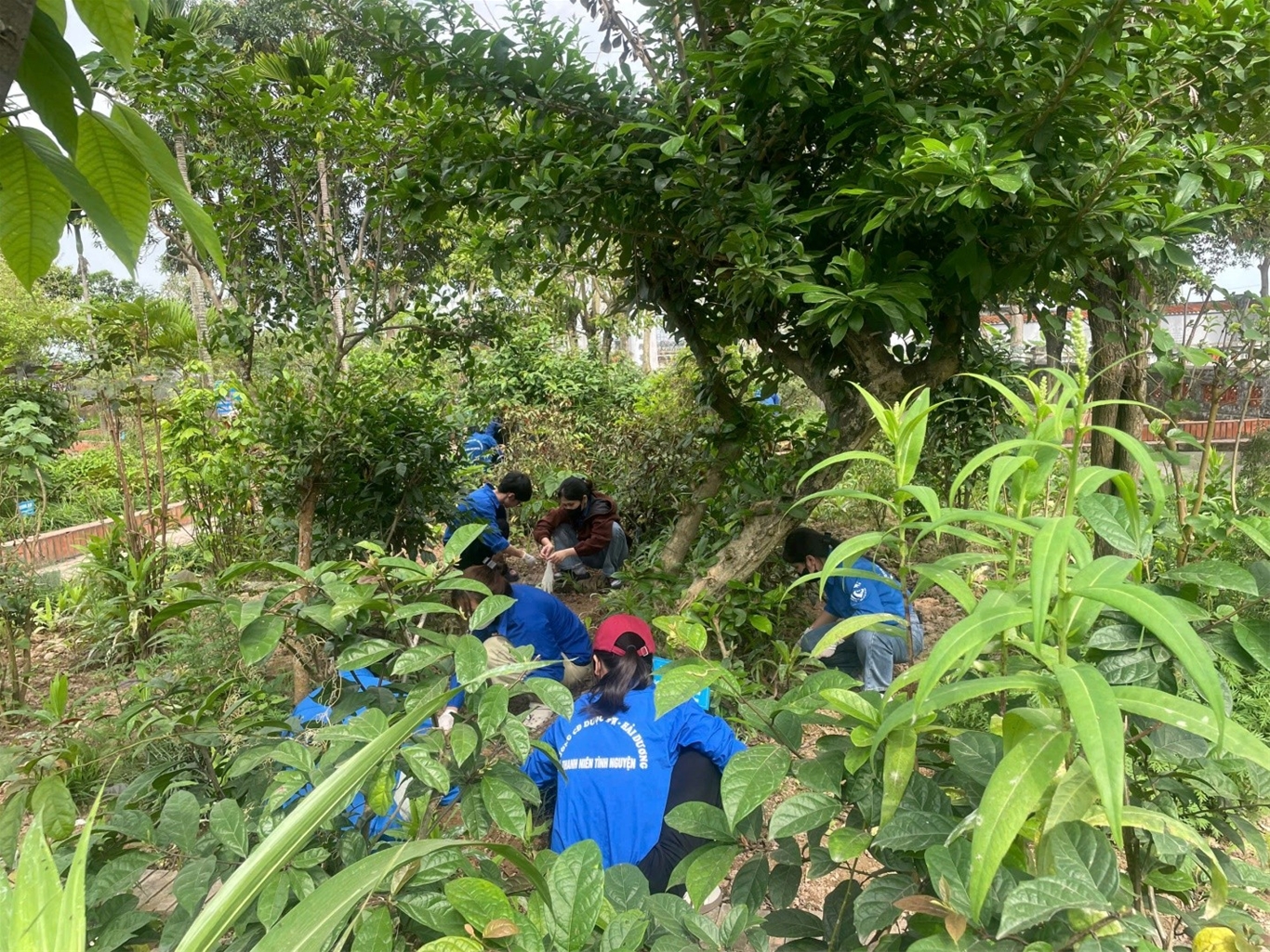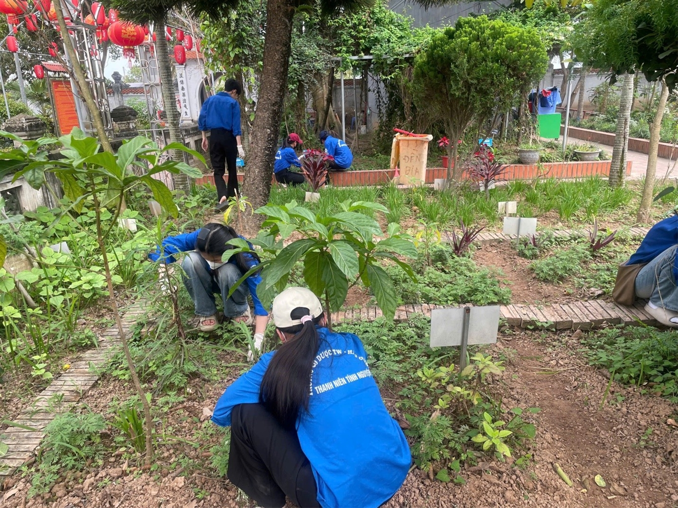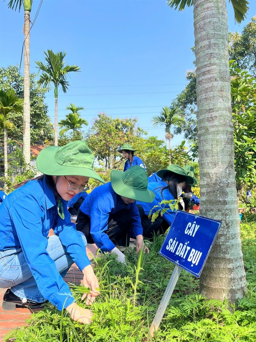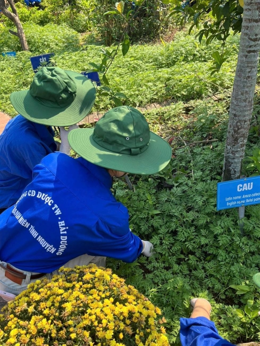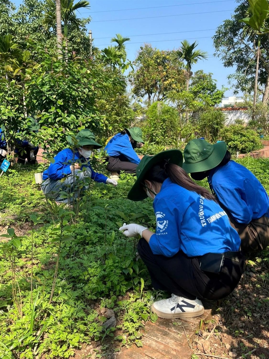 Tiếp nối chuỗi hoạt động, ngày ra quân thứ 2, Đoàn trường triển khai cho đội hình tình nguyện cắt tỉa cây, nhổ cỏ, quét dọn và trồng bổ thêm sung cây thuốc tại vườn thuốc Nam. Những công việc cụ thể, ý nghĩa đã góp phần tạo cảnh quan xanh - sạch - đẹp, đồng thời bảo tồn và phát huy giá trị truyền thống của nguồn dược liệu nước nhà.