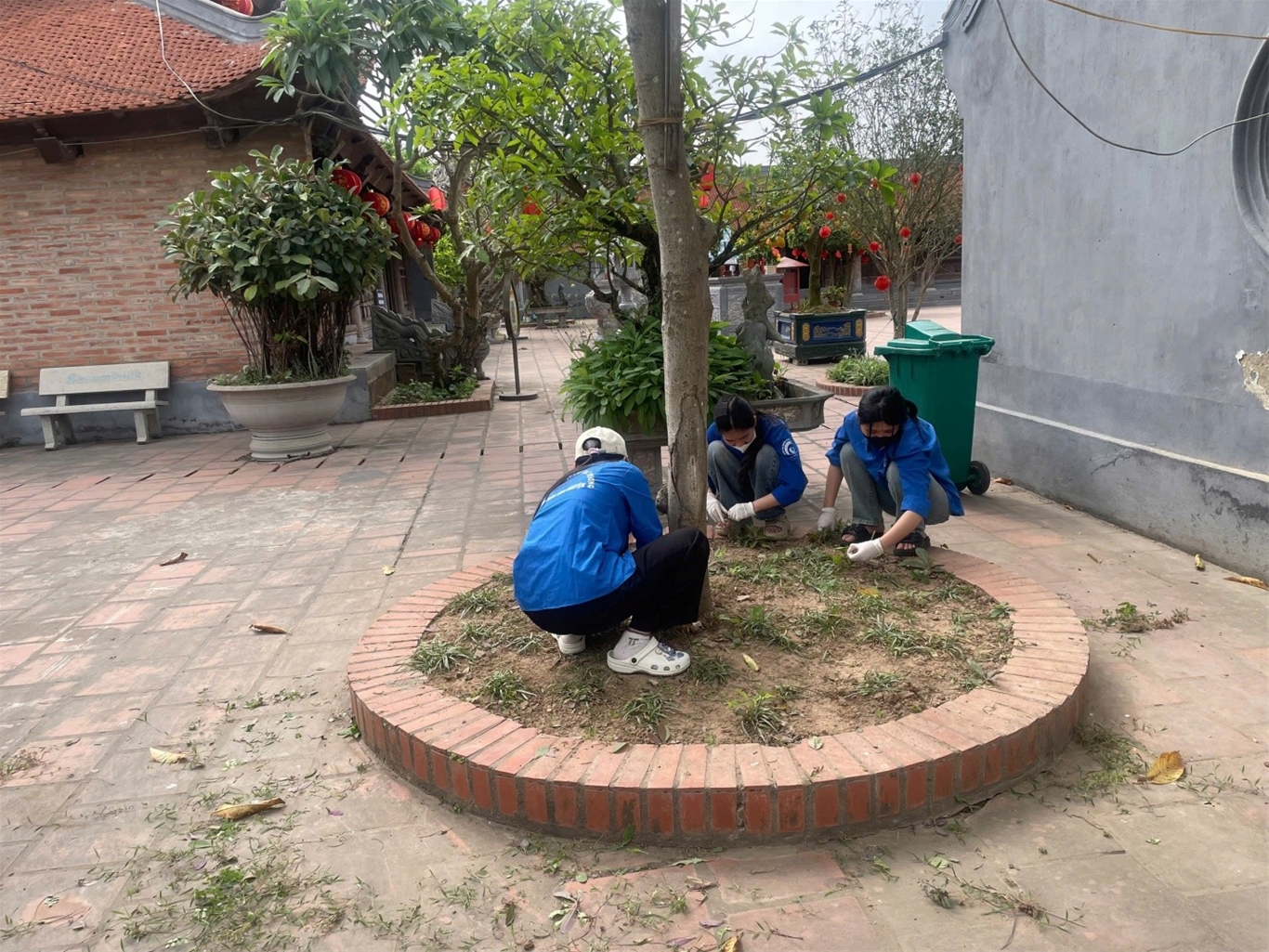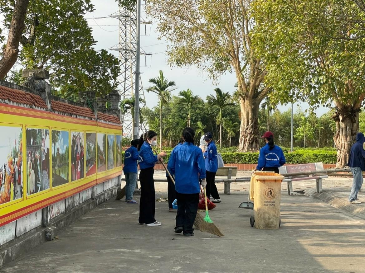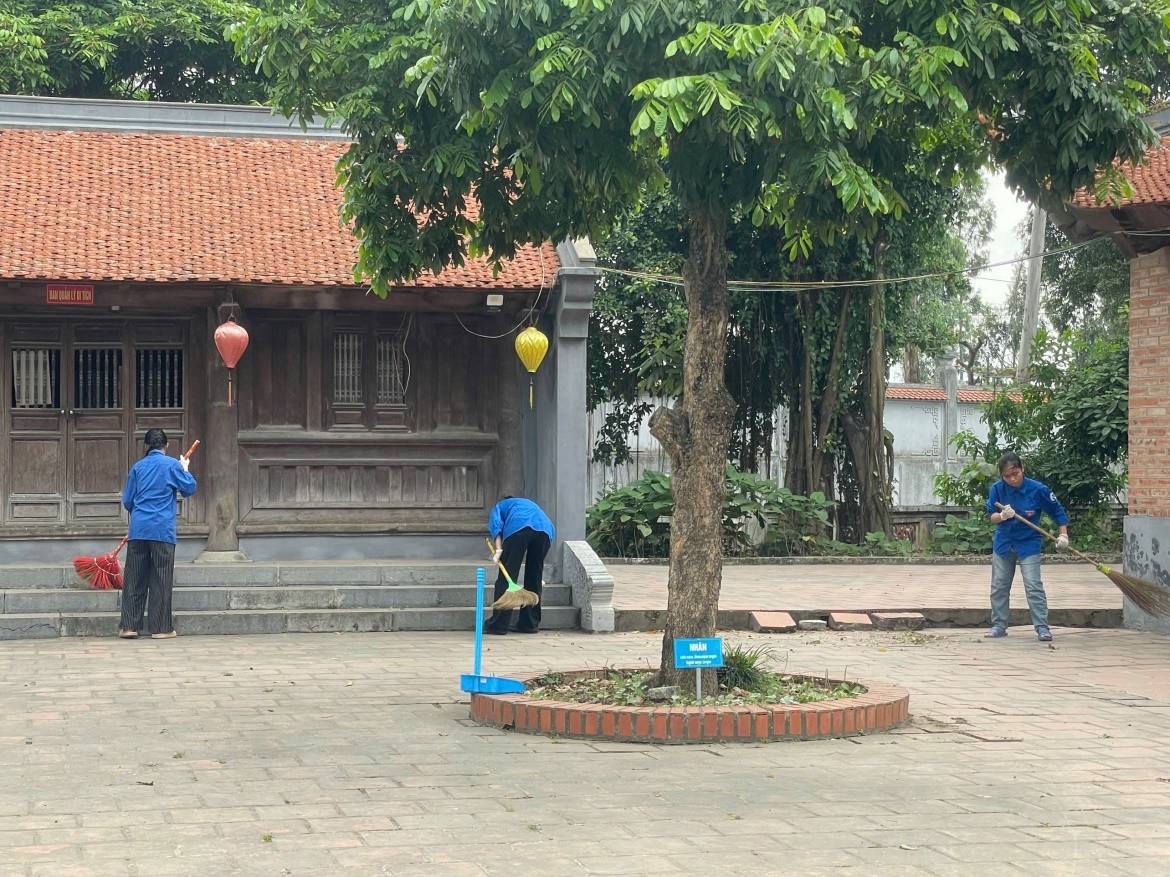 Sinh viên quét dọn, vệ sinh cảnh quan khuôn viên tại Đền Bia