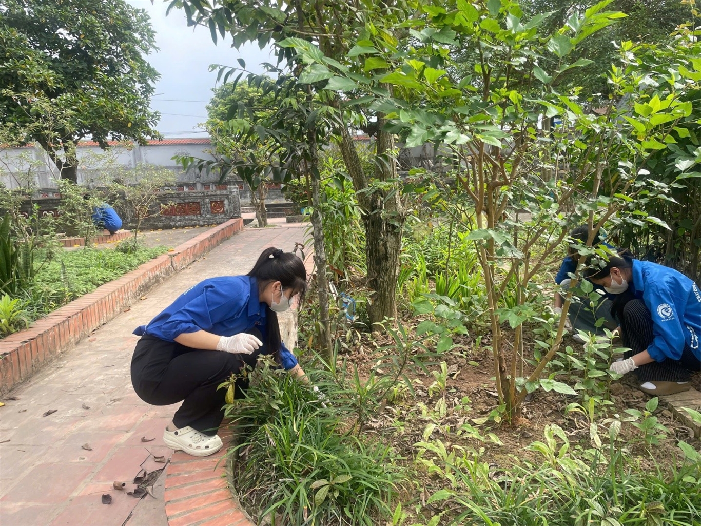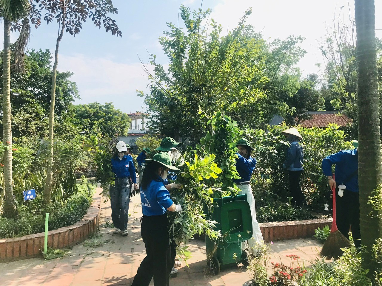 Sinh viên cùng cắt tỉa cây và hỗ trợ dọn dẹp tạo không gian đẹp hơn tại vườn thuốc nam