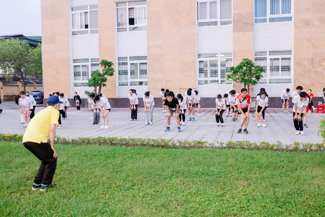 Thay mặt ban tổ chức giải chạy, thầy Nguyễn Tiến Sơn - Giảng viên bộ môn Khoa học cơ bản phổ biến thể lệ, nội quy của giải chạy cũng như hướng dẫn các vận động viên khởi động.