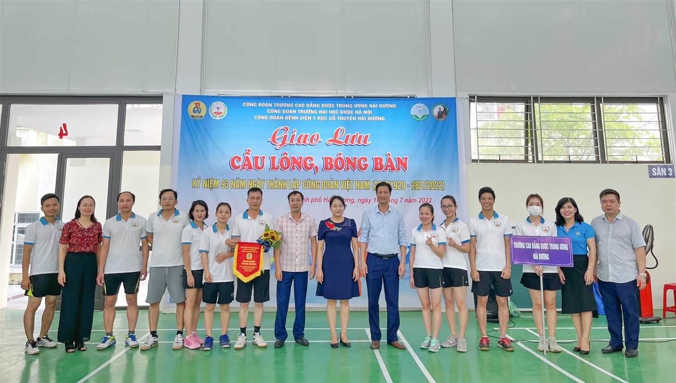 Nhân kỷ niệm 93 năm Ngày thành lập Công đoàn Việt Nam (28/7/1929 -28/7/2022), được sự đồng ý của Đảng ủy và Ban lãnh đạo 3 đơn vị: Trường Cao đẳng Dược Trung ương Hải Dương, Trường Đại học Dược Hà Nội và Bệnh viện Y học Cổ truyền Hải Dương, chiều ngày 16/7/2022, Ban Chấp hành Công đoàn Trường Cao đẳng Dược Trung ương Hải Dương đã tổ chức Giao lưu Cầu lông và Bóng bàn, nhằm mục đích đẩy mạnh phong trào thể dục thể thao, rèn luyện, nâng cao sức khỏe trong cán bộ, công chức, viên chức và người lao động, đồng thời tăng cường tình đoàn kết gắn bó giữa 03 cơ quan trên lĩnh vực phối hợp đào tạo, chuyển giao ứng dụng nghiên cứu khoa học vào sản xuất, chăm sóc sức khỏe nhân dân, góp phần hoàn thành nhiệm vụ chung của ngành y tế.