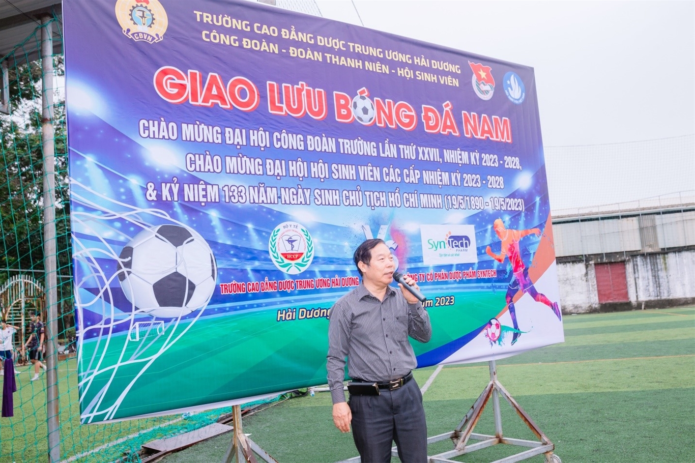 Hướng tới Kỷ niệm 133 năm Ngày sinh Chủ tịch Hồ Chí Minh (19/5/1890 - 19/5/2023) và Chào mừng Đại hội Công đoàn trường lần thứ XXVII, nhiệm kỳ 2023 -2028, Đại hội Hội Sinh viên các cấp nhiệm kỳ 2023 - 2028, được sự đồng ý của Đảng ủy và Ban lãnh đạo 2 đơn vị: Trường Cao đẳng Dược Trung ương Hải Dương và công ty Cổ phần Dược phẩm Syntech, BCH Công đoàn hai đơn vị phối hợp với BCH đoàn Trường Cao đẳng Dược Trung ương Hải Dương tổ chức chương trình giao lưu Bóng đá nam, với mục đích đẩy mạnh phong trào thể dục thể thao, rèn luyện, nâng cao sức khỏe trong đội ngũ cán bộ, công chức, viên chức và người lao động, đồng thời tăng cường tình đoàn kết gắn bó giữa Trường Cao đẳng Dược Trung ương Hải Dương và công ty Cổ phần Dược phẩm Syntech.
