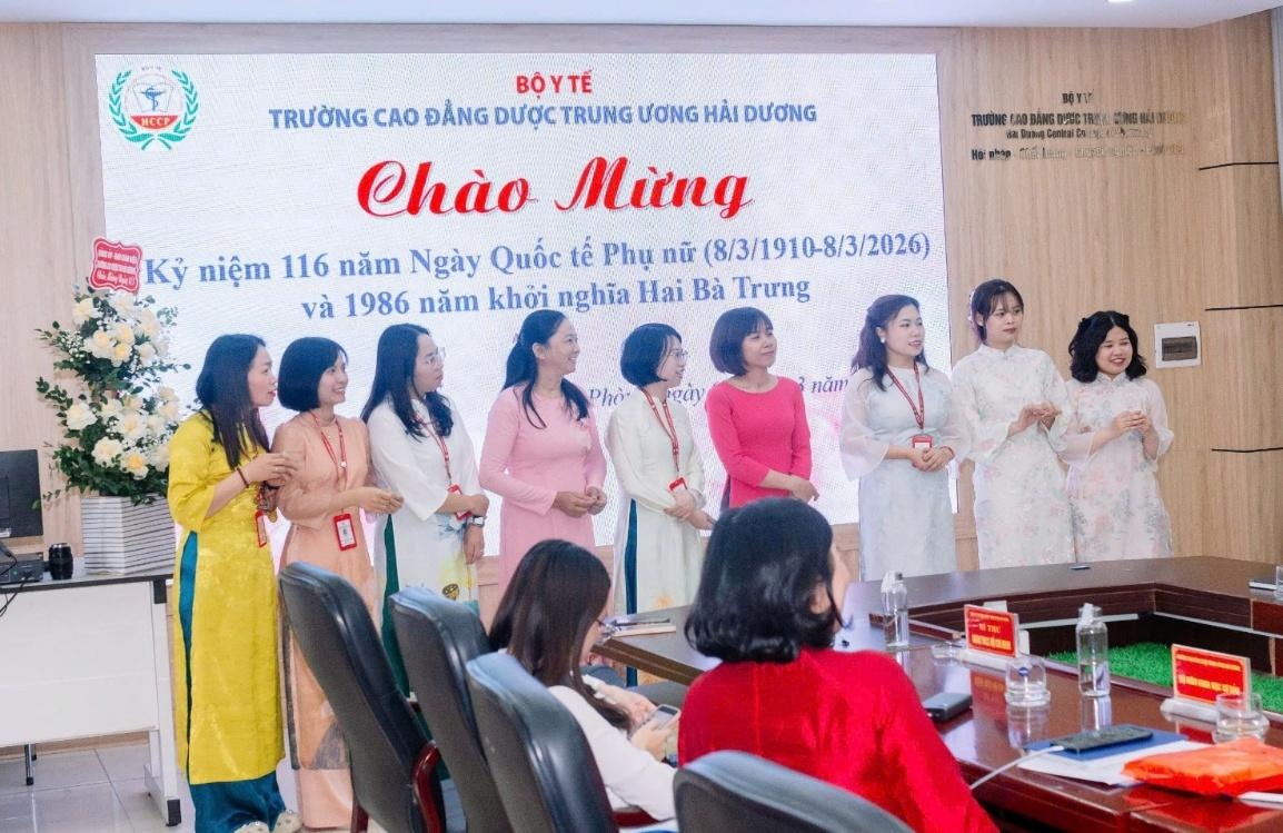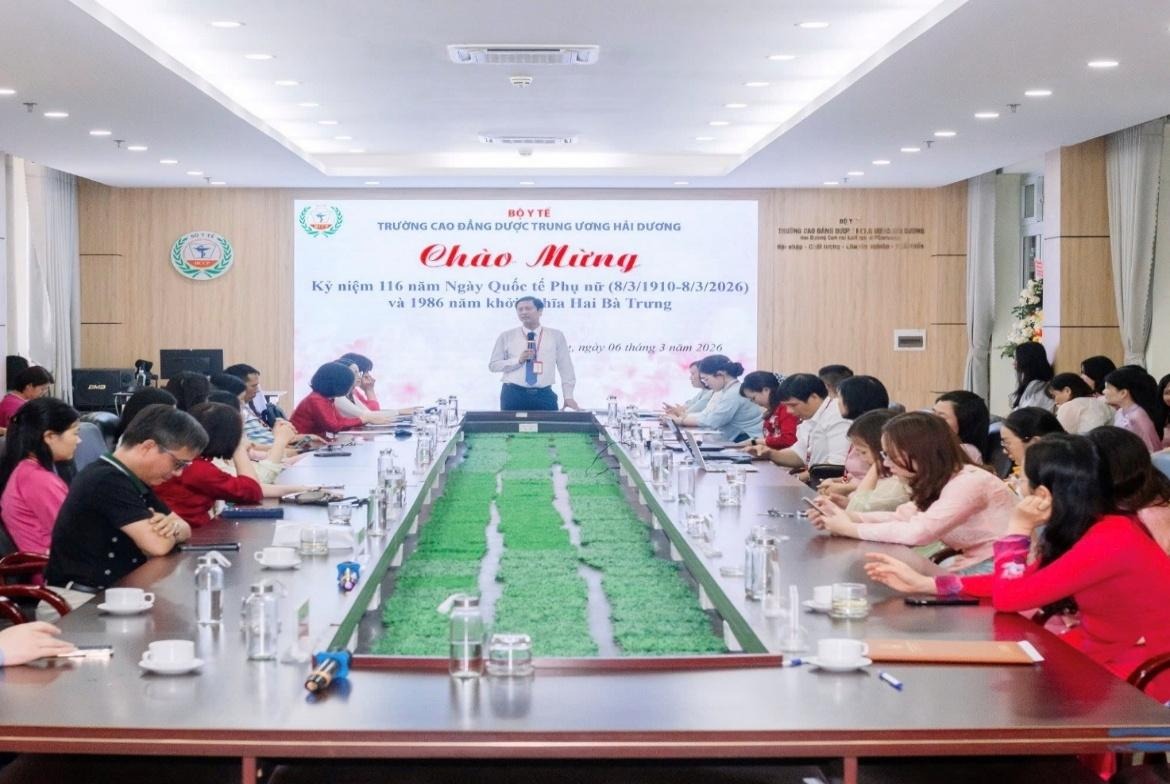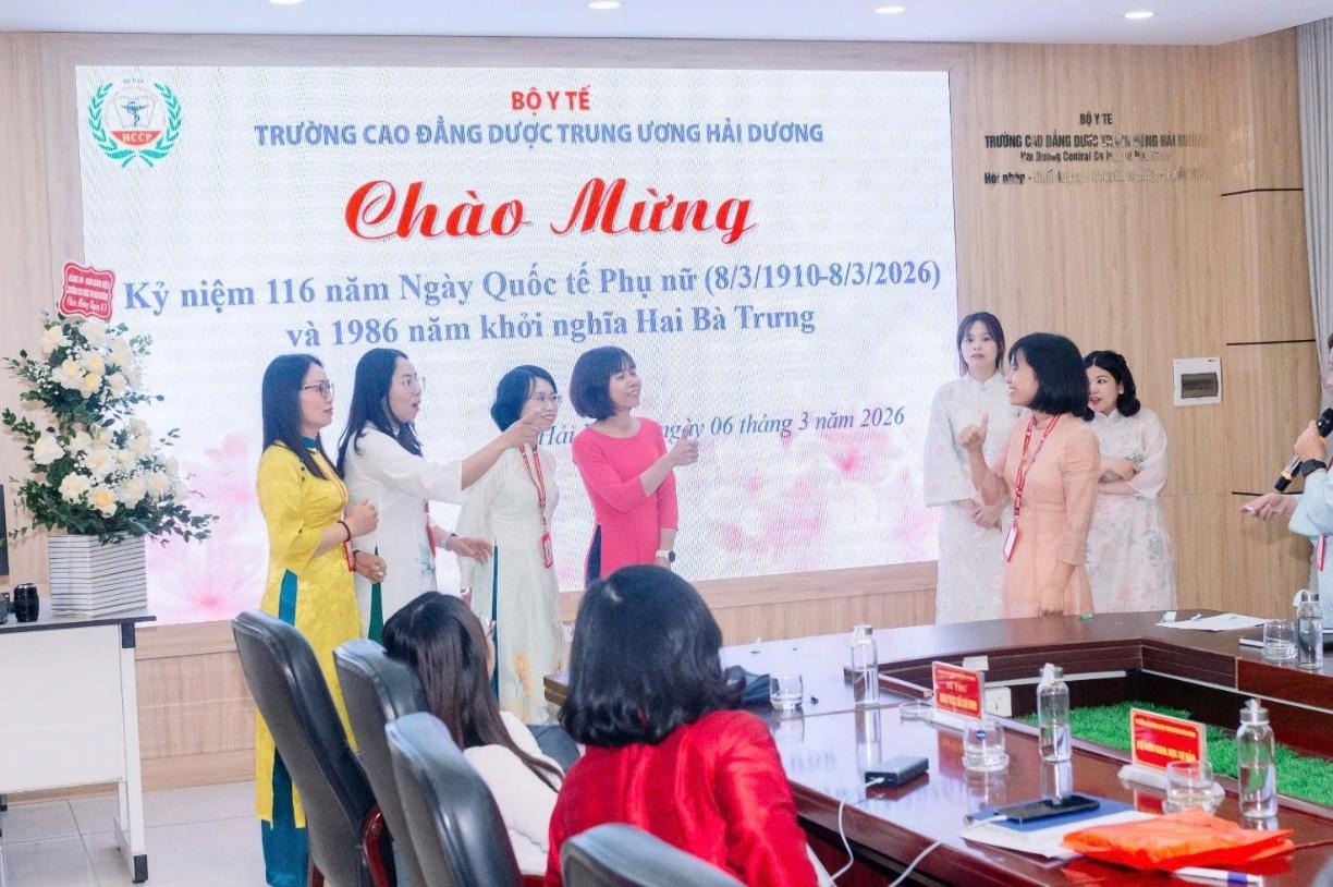 Chiều ngày 6/3/2026, Công đoàn trường Cao đẳng Dược Trung ương Hải Dương long trọng tổ chức kỷ niệm 116 năm ngày Quốc tế Phụ nữ 8/3 và 1986 năm Khởi nghĩa Hai Bà Trưng. Đây là dịp để các nữ viên chức, người lao động ôn lại những truyền thống vẻ vang, hào hùng của lịch sử, ghi nhận sự đóng góp to lớn của chị em phụ nữ, đồng thời, nhìn nhận, đánh giá hoạt động và định hướng hoạt động cho năm 2026.