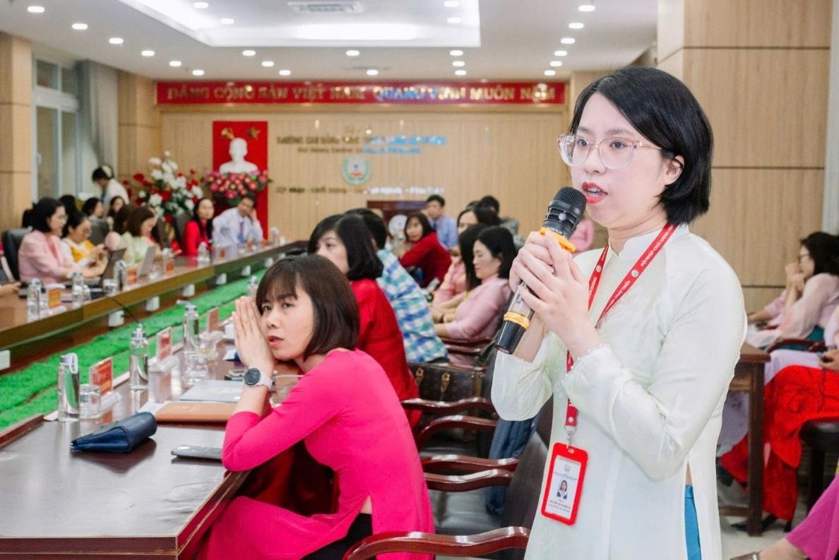 Đại diện nữ VCNLĐ Nhà trường, DSCKII. Nguyễn Thị Thanh Nhài - Bí thư Đảng ủy đã phát biểu bày tỏ lời cảm ơn tới Đảng ủy, Ban Giám hiệu, toàn thể các anh, em nam giới đã luôn tạo mọi điều kiện, ủng hộ chị em hoàn thành tốt mọi nhiệm vụ trong công tác cũng như thực hiện chức năng giới và khẳng định sẽ giữ vững truyền thống đoàn kết, phát huy truyền thống Phụ nữ Việt Nam “Anh hùng - Bất khuất - Trung hậu - Đảm đang”, cống hiến hết mình cho sự nghiệp xây dựng và phát triển Nhà trường ngày càng phát triển vững mạnh.