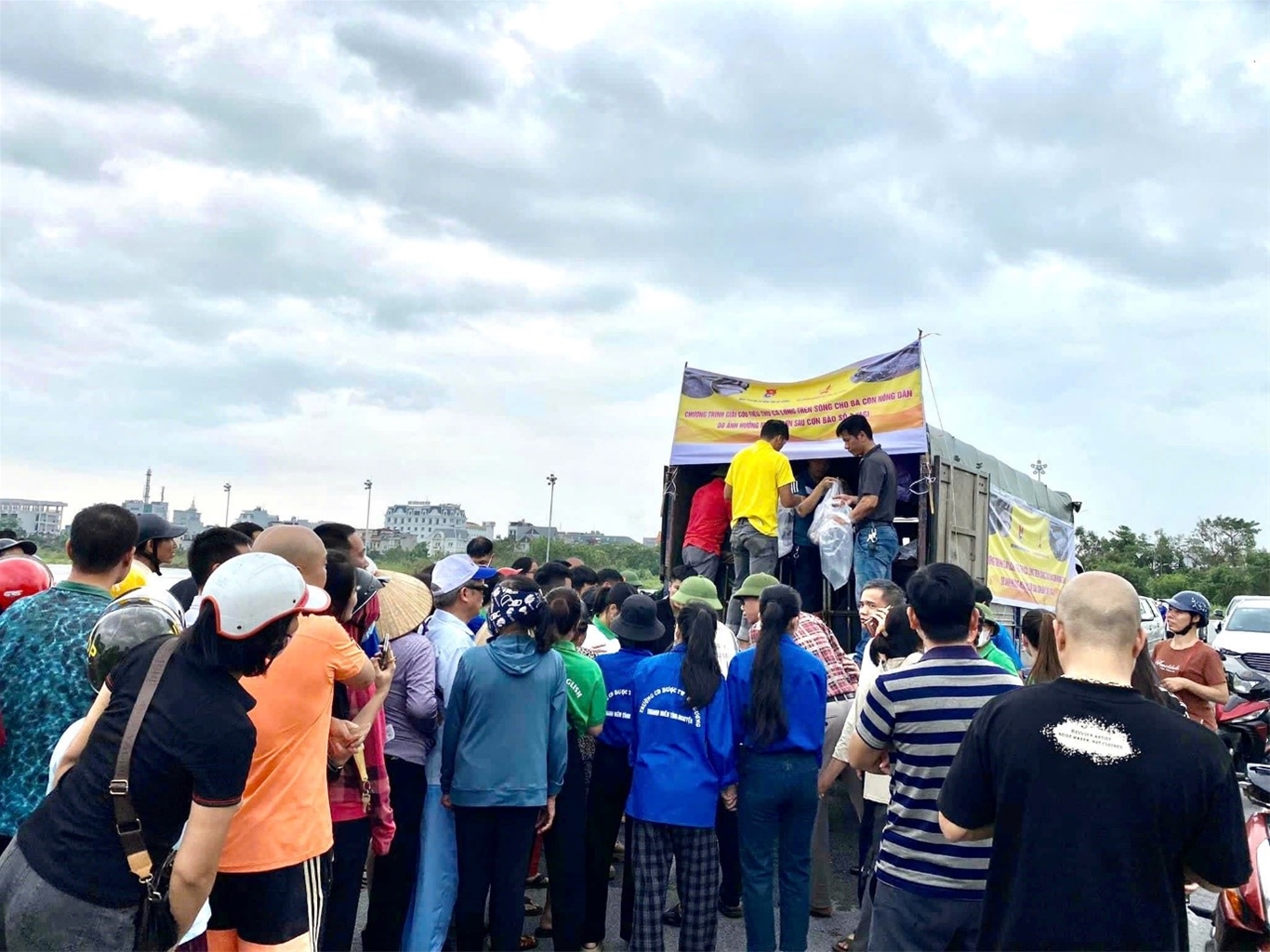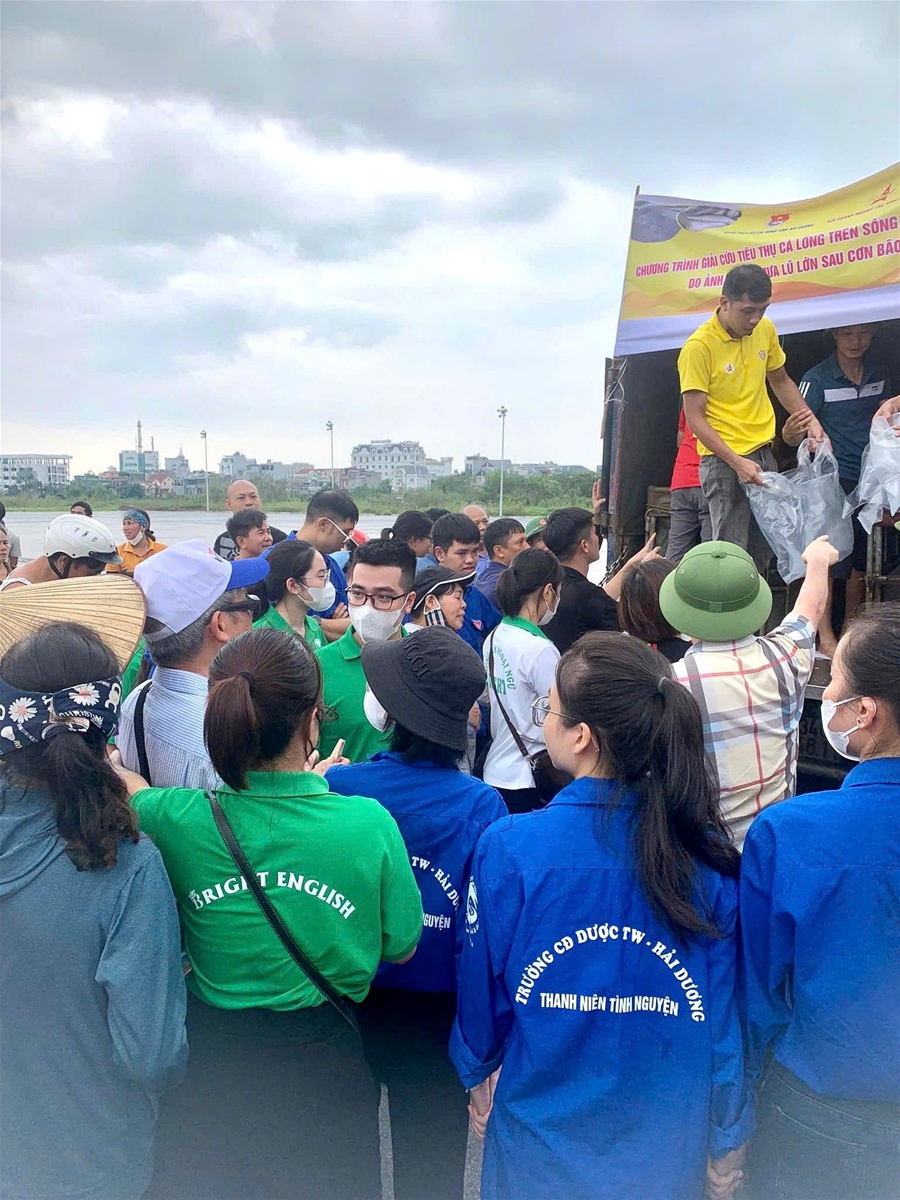 Sinh viên nhà trường hỗ trợ công tác giải cứu, tiêu thụ cá lồng hưởng của cơn bão tại quảng trường Trung tâm Văn hóa Xứ Đông
