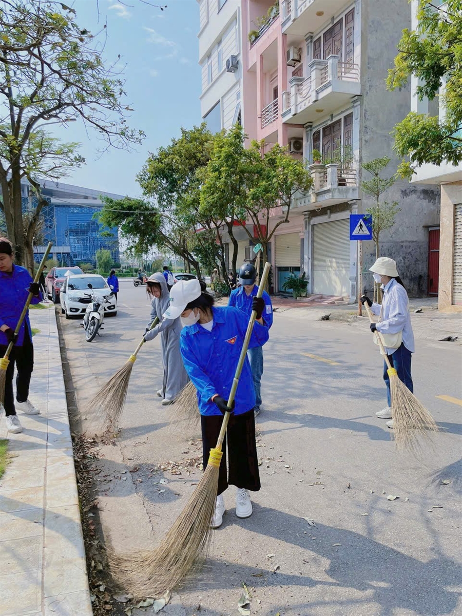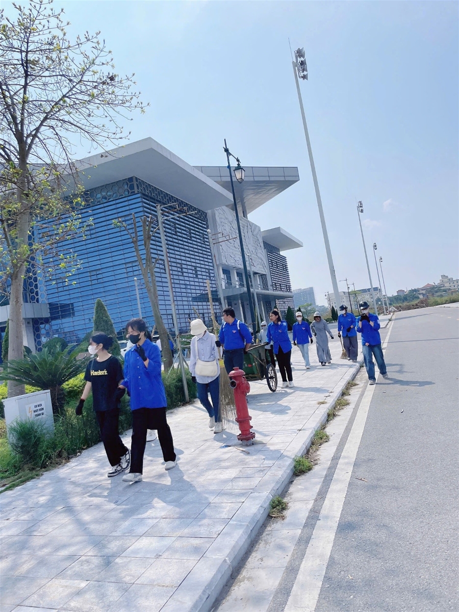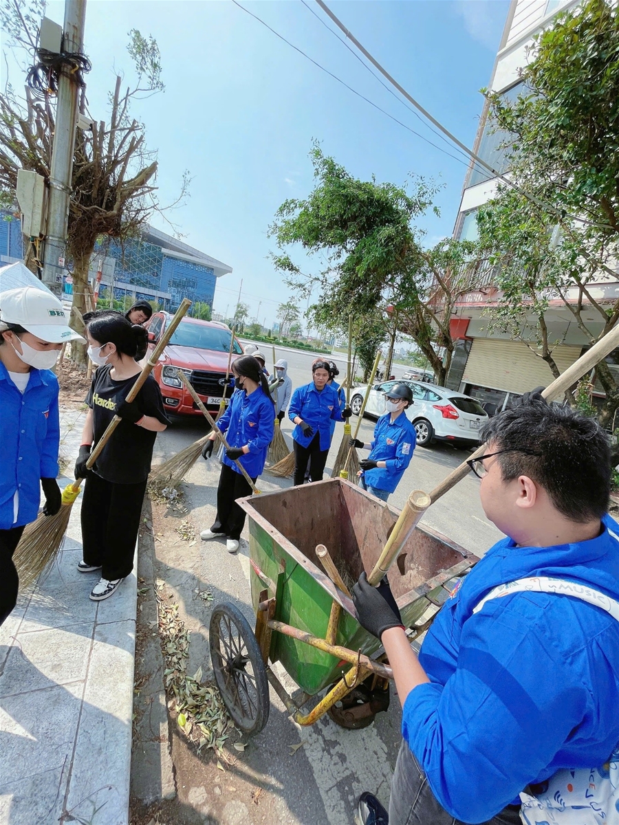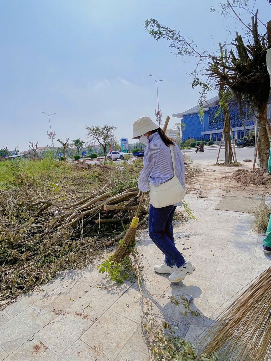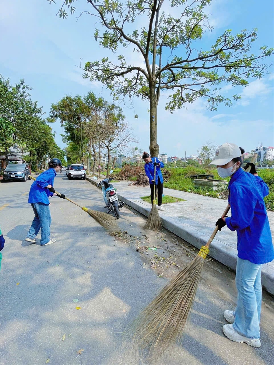 Sinh viên nhà trường tham gia dọn dẹp tại khuôn viên của trường