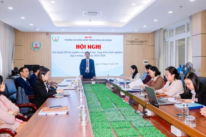 Ngày 25/11/2025, Hội đồng khoa học cấp cơ sở của Trường Cao đẳng Dược Trung ương Hải Dương đã tiến hành xét duyệt 16 đề tài, sáng kiến nghiên cứu khoa học năm học 2025 – 2026.