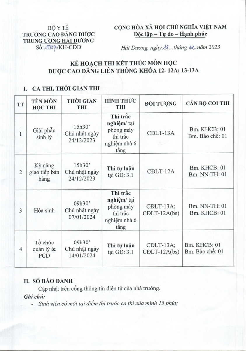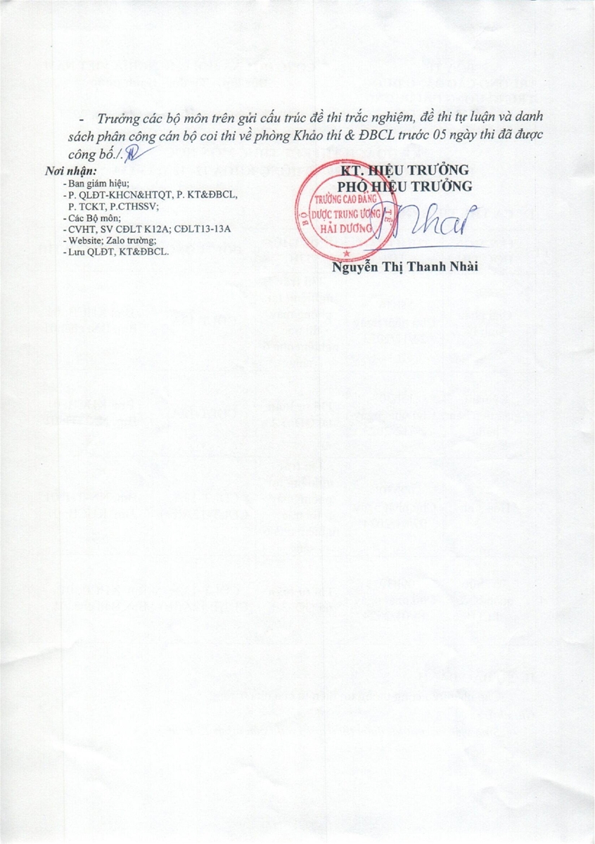 KẾ HOẠCH THI KTMH CĐLT KHÓA 12A; 13A