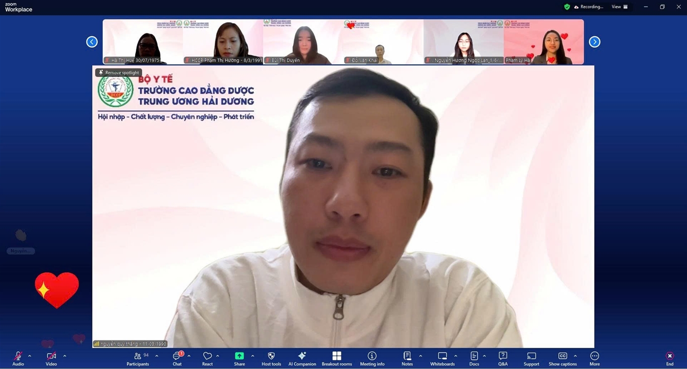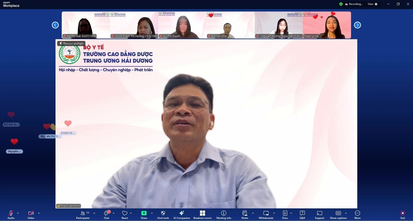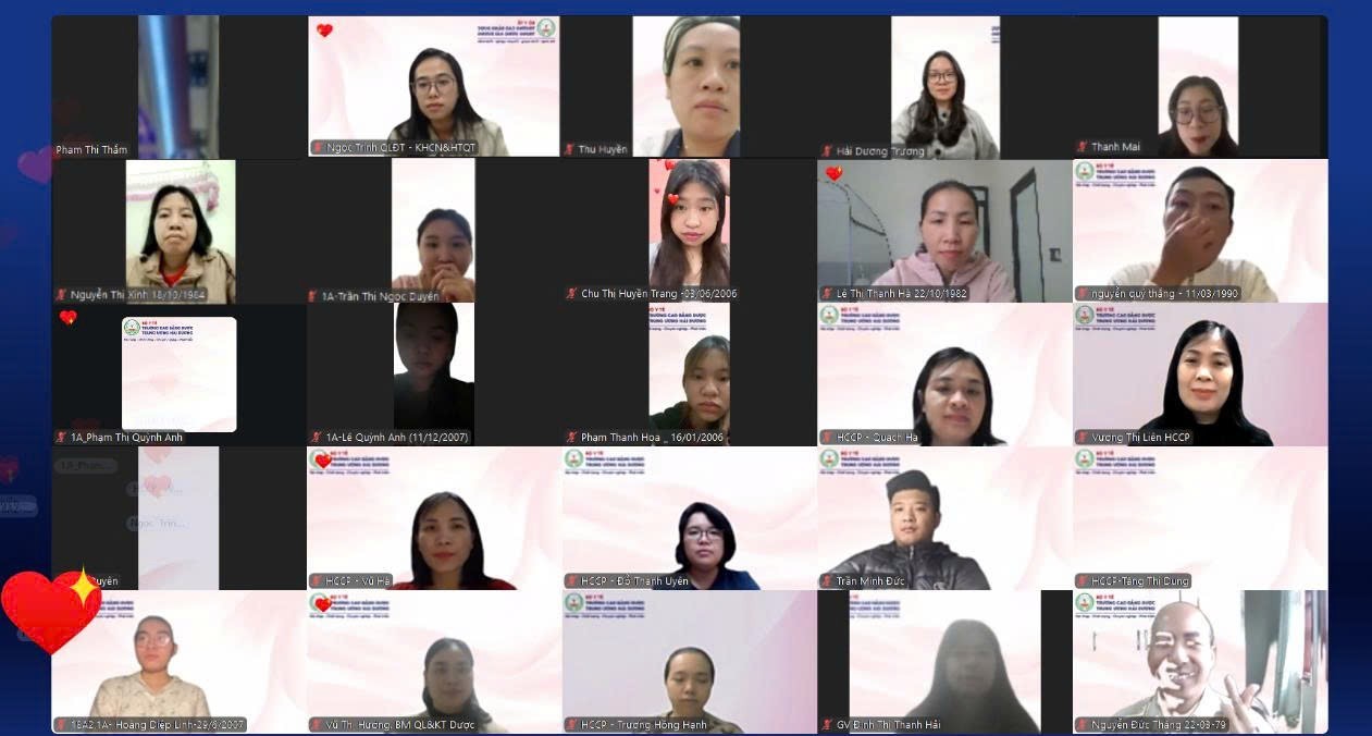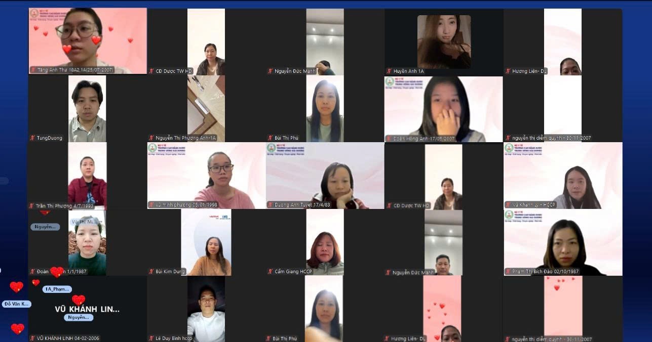 Sáng ngày 17/01/2026, Trường Cao đẳng Dược Trung ương Hải Dương đã long trọng tổ chức Lễ khai giảng khóa đào tạo “Xoa bóp bấm huyệt dưỡng sinh” Khóa I theo hình thức trực tuyến qua phần mềm Zoom, với sự tham gia của lãnh đạo Nhà trường, đội ngũ giảng viên và đông đảo học viên đến từ nhiều địa phương.