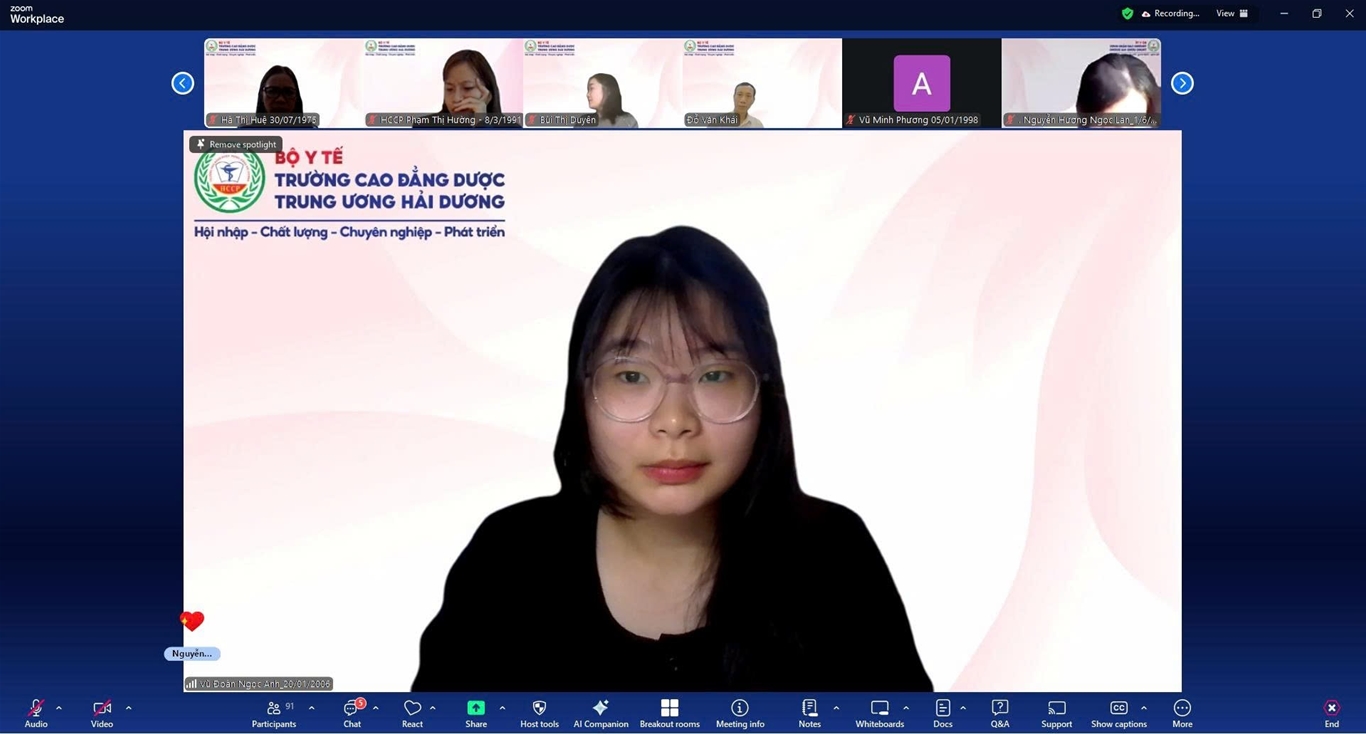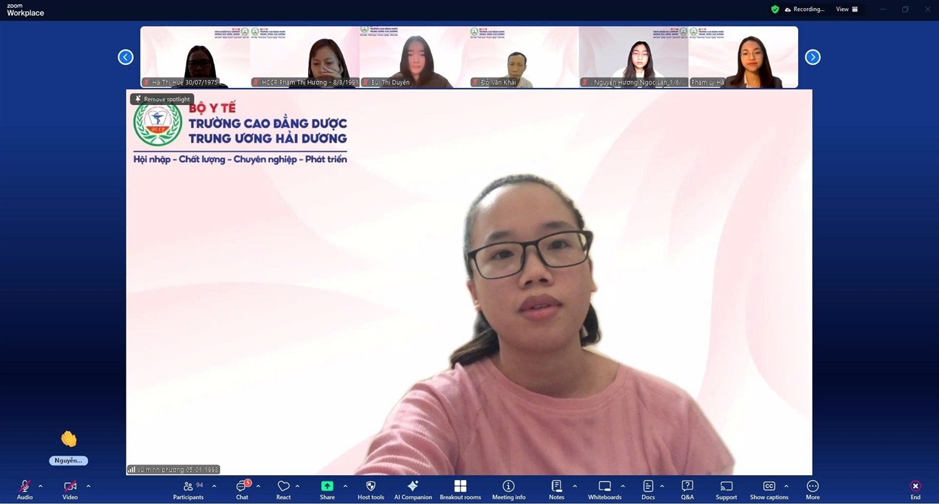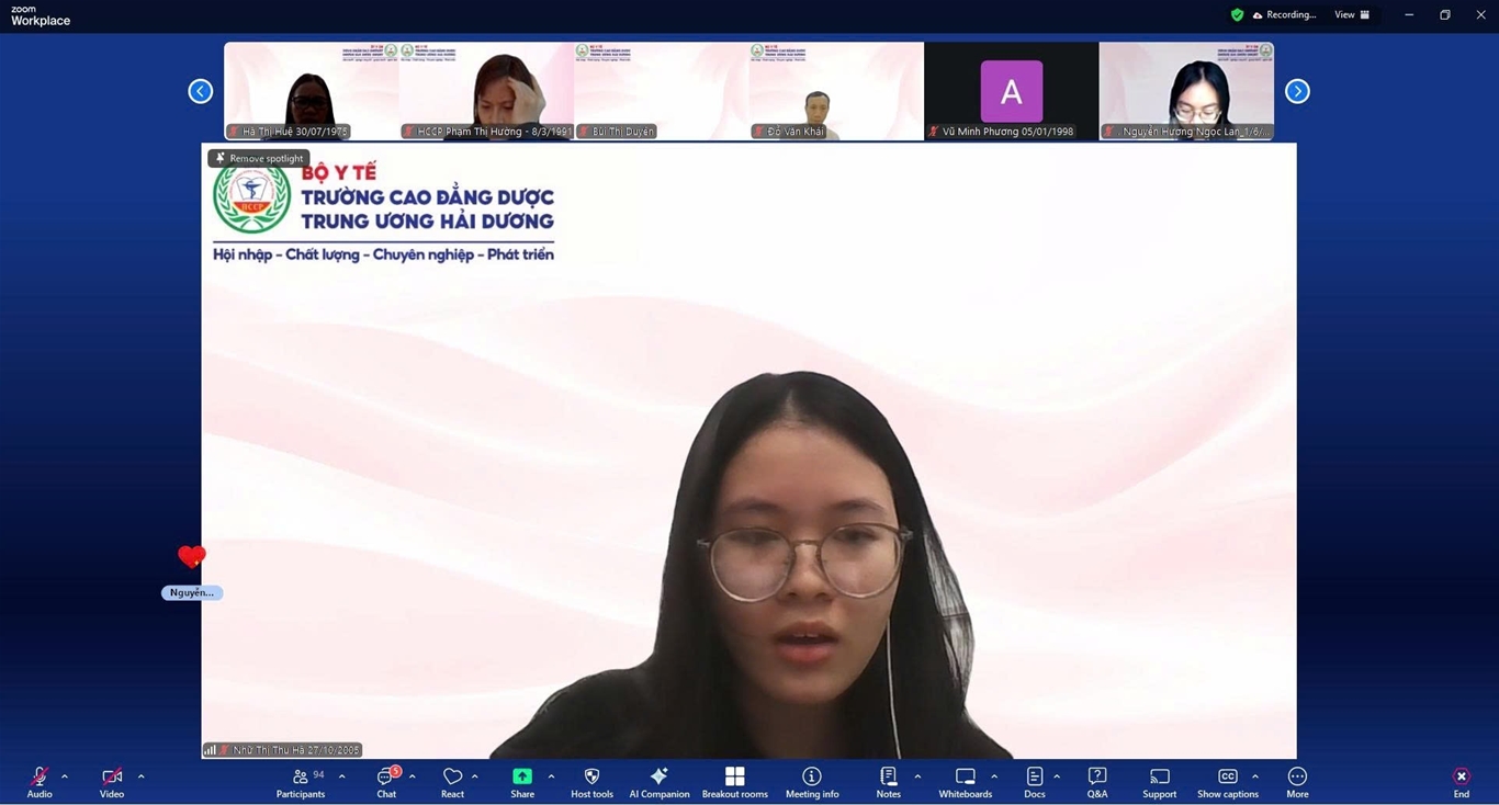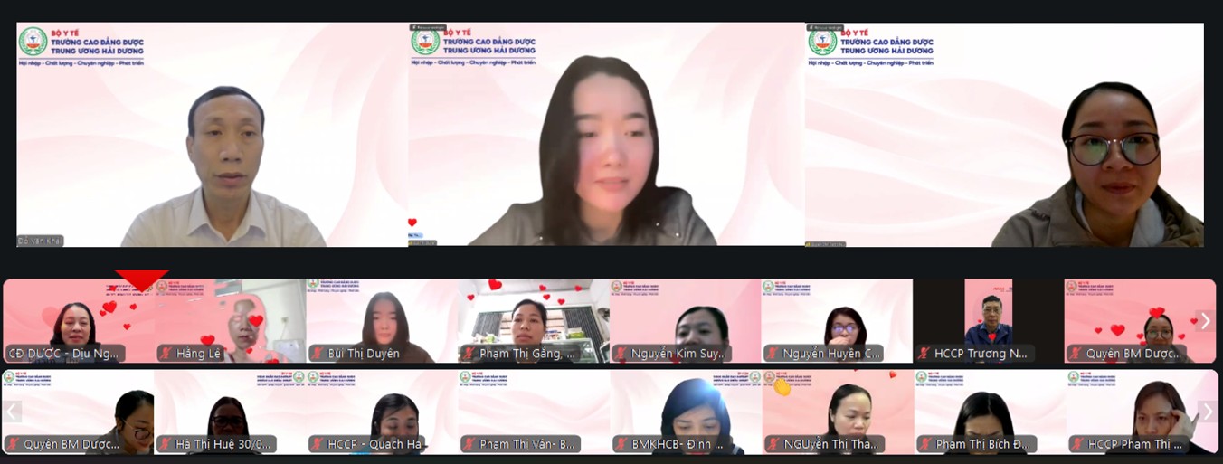 Sáng ngày 17/01/2026, Trường Cao đẳng Dược Trung ương Hải Dương đã long trọng tổ chức Lễ khai giảng khóa đào tạo “Xoa bóp bấm huyệt dưỡng sinh” Khóa I theo hình thức trực tuyến qua phần mềm Zoom, với sự tham gia của lãnh đạo Nhà trường, đội ngũ giảng viên và đông đảo học viên đến từ nhiều địa phương.