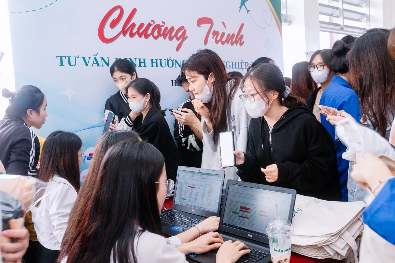 Hoạt động hướng nghiệp diễn ra sôi nổi với phần hỏi đáp giữa Dược Khoa và sinh viên với những món quà lưu niệm rất đáng yêu. Những vấn đề được sinh viên quan tâm nhiều như: việc làm, yêu cầu công việc, sự khó khăn trong công việc, làm chủ cơ sở bán lẻ… Dược sỹ Nguyễn Trường Giang đã chia sẻ: trong thời gian tới tỷ lệ nhà thuốc vẫn sẽ tăng trưởng, để làm chủ một nhà thuốc bạn cần biết kỹ năng xác định nhu cầu mở nhà thuốc, nhóm đặc điểm tính cách và cần có sự kiên trì, nhẫn lại trong công việc.