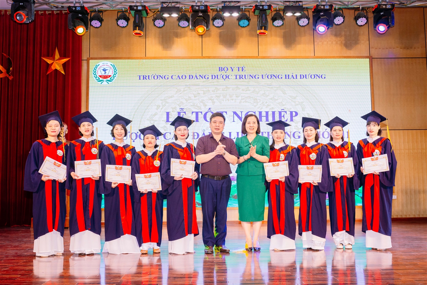 Cũng trong dịp này, có 35 tân cử nhân được trao bằng tốt nghiệp và 12 sinh viên đạt thành tích cao trong học tập, rèn luyện, công tác lớp của lớp 11B đã được trường Cao đẳng Dược Trung ương Hải Dương tuyên dương, khen thưởng.