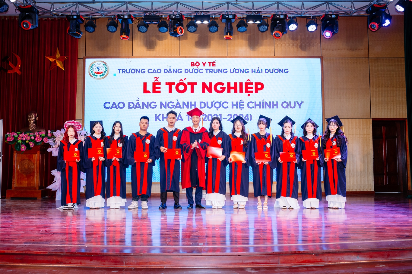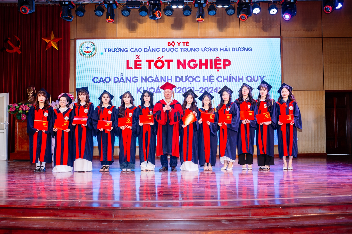 Ngày 09/08/2024, Trường Cao đẳng Dược Trung ương Hải Dương đã long trọng tổ chức Lễ trao bằng tốt nghiệp cao đẳng Dược hệ chính quy cho các cử nhân Dược tân khoa khóa 14. Tham dự buổi lễ có TS.Nguyễn Thị Hường - Bí thư Đảng ủy, Chủ tịch Hội đồng trường; TS.Trần Bá Kiên - Phó Bí thư Đảng ủy, Hiệu trưởng; Các thầy cô trong Đảng ủy, Ban giám hiệu, Hội đồng trường; cán bộ quản lý các đơn vị, cố vấn học tập, giảng viên các khóa lớp, đặc biệt là sự hiện diện của 242 tân cử nhân Dược cao đẳng được công nhận tốt nghiệp trong đợt này cùng các bậc phụ huynh.