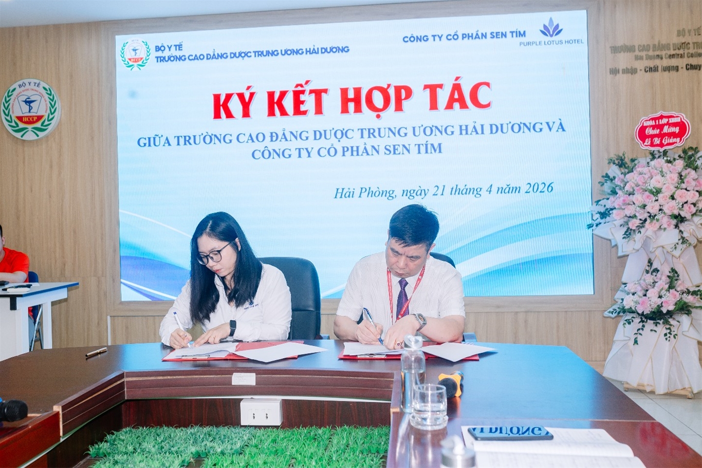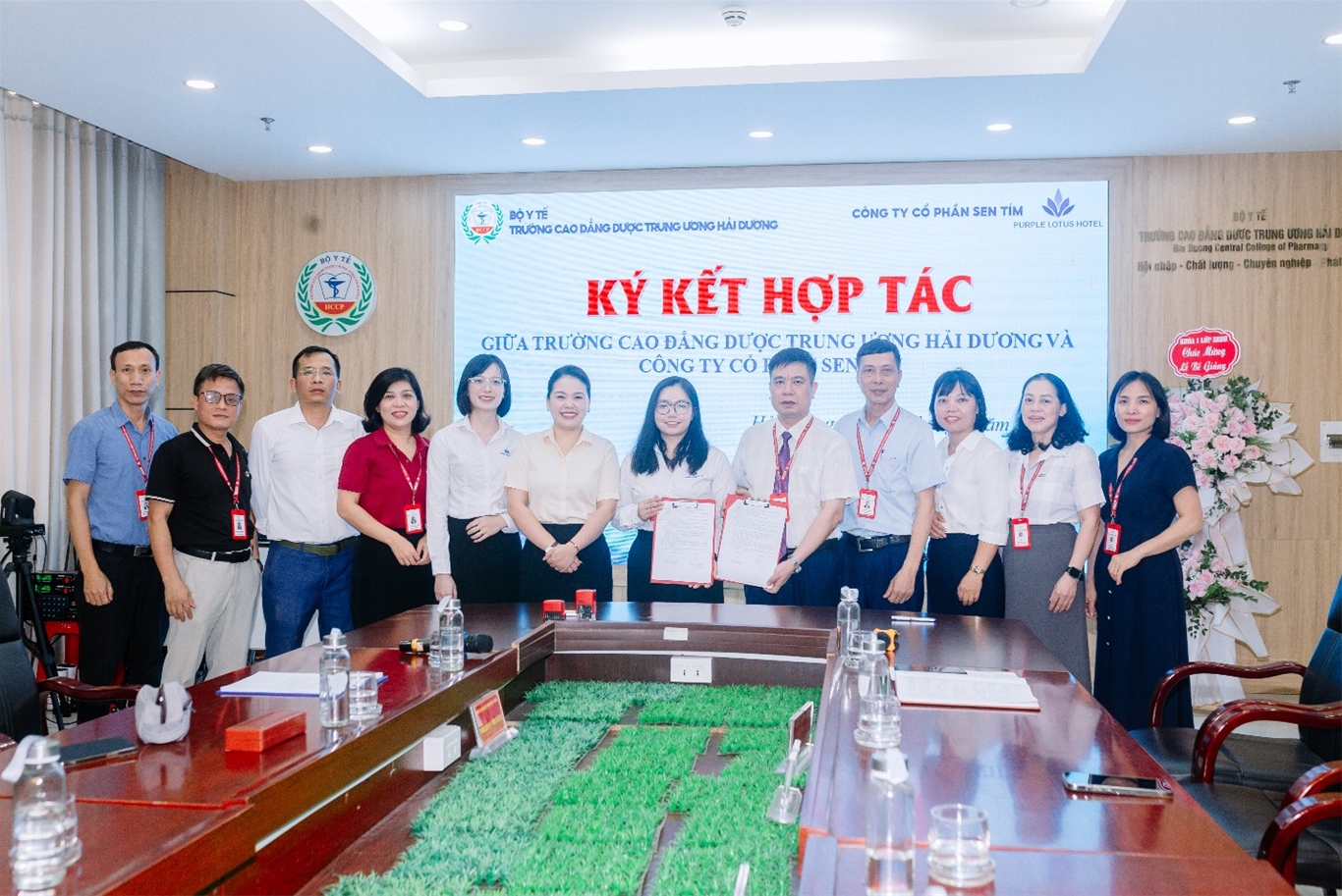 Tại buổi lễ, Trường Cao đẳng Dược Trung ương Hải Dương và Công ty cổ phần Sen tím đã tiến hành ký kết thỏa thuận hợp tác, với các nội dung trọng tâm trong lĩnh vực chăm sóc sắc đẹp và massage như: phối hợp trong đào tạo thực hành cho học viên, sinh viên; hỗ trợ học viên, sinh viên thực tập, trải nghiệm thực tế tại doanh nghiệp và tuyển dụng nhân sự.
