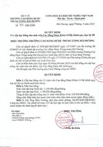 Quyết định v/v cấp học bổng cho SV CĐD khóa 14 hệ chính quy học kỳ III