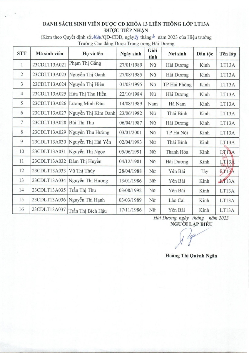 QĐ tiếp nhận SV trường CĐ Y tế Hải Phòng vào học CĐCQ khóa 15 của Trường