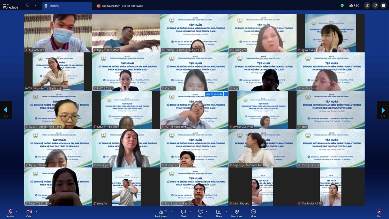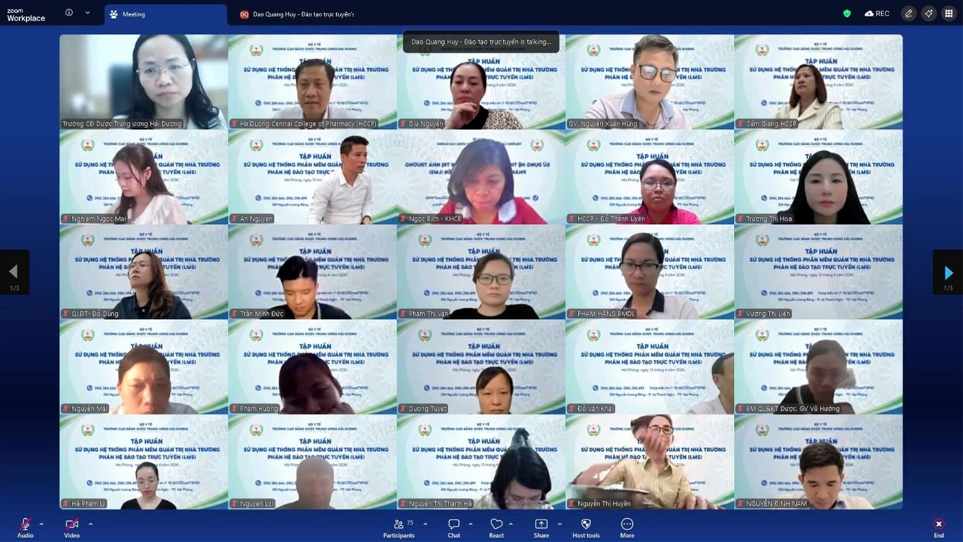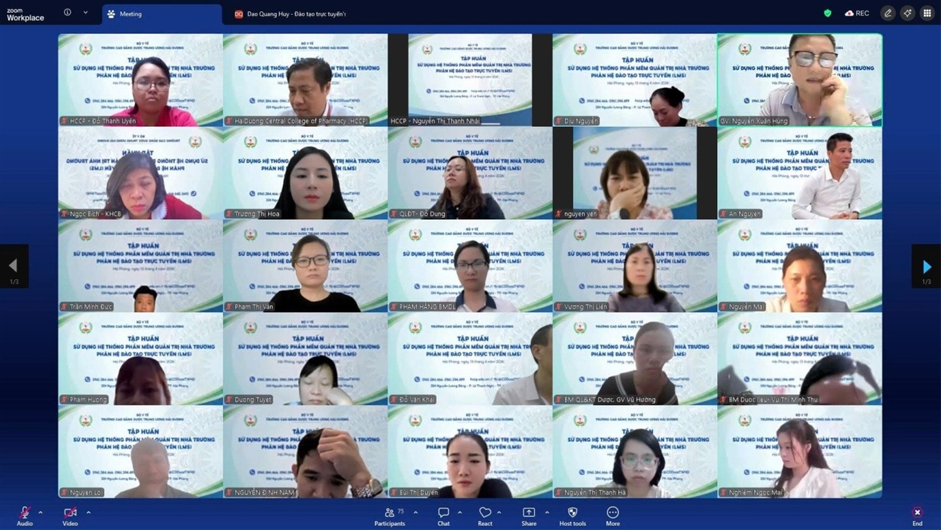 Nhằm từng bước hiện thực hóa chiến lược chuyển đổi số toàn diện trong nhà trường, chiều 13/04/2026, Trường Cao đẳng Dược Trung ương Hải Dương (HCCP) đã tổ chức chương trình tập huấn sử dụng hệ thống đào tạo trực tuyến (LMS) dành cho đội ngũ giảng viên của trường. Đây là một trong những hoạt động trọng tâm, thể hiện rõ quyết tâm của Nhà trường trong việc xây dựng môi trường giáo dục hiện đại, linh hoạt và thích ứng với xu thế phát triển.