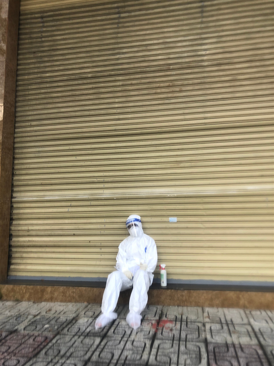 Dưới cái nắng gắt như cháy da, ngột ngạt, mồ hôi nước mắt hòa thấm bộ quần áo bảo hộ kín như bưng, nóng nực và ngột ngạt, mùi cồn xịt lên tay và toàn bộ quàn áo bảo hộ, nồng xốc tỏa ra khắp người. Chúng tôi dường như đã kiệt sức, nhưng tất cả đều động viên nhau không được phép gục ngã, không thể buông xuôi Bởi vì “Mệt mỏi chỉ là cảm giác”. Vất vả đó cũng chỉ là một phần của lực lượng tuyến đầu chống dịch ngày đêm chiến đấu với bệnh tật dành lại sự sống cho người dân, vì thế chúng tôi càng phải cố gắng, quyết tâm góp sức nhỏ bé của mình cùng đẩy lùi dịch bệnh .