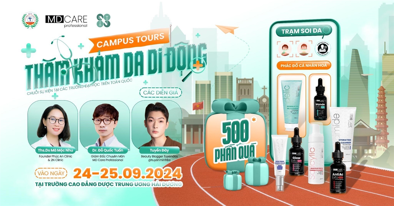 Trường Cao đẳng Dược TW Hải Dương kết hợp cùng nhãn hàng MD CARE Professional và 2N Clinic tổ chức sự kiện Chào tân sinh viên K17: Campus Tour - Điểm thăm khám da di động, nằm trong chuỗi sự kiện tại các địa điểm trường trên toàn quốc.