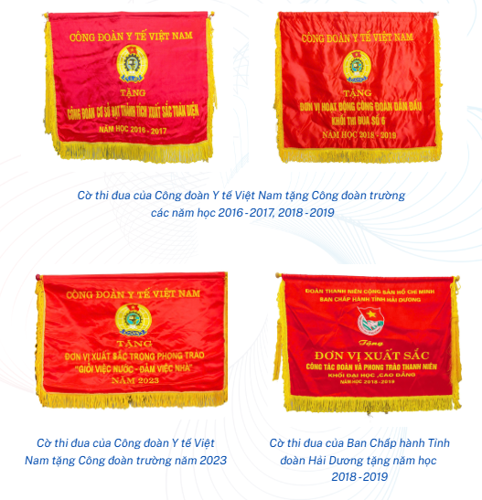 - Công đoàn Trường được Công đoàn Y tế Việt Nam tặng Cờ thi đua Xuất sắc năm 2019, Cờ chuyên đề “Xanh - sạch - đẹp” năm 2022, Cờ thi đua chuyên đề “Giỏi việc nước - đảm việc nhà” năm 2023, Bằng khen các năm 2016, 2017, 2018, 2020, 2021, 2014. Được Tổng Liên đoàn Lao động Việt Nam tặng Bằng khen các năm 2016, 2017;