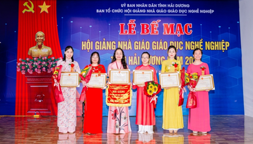 DSCKII. Nguyễn Thị Thanh Nhài, Phó Hiệu trưởng và các giảng viên nhà trường tại Hội giảng nhà giáo GDNN tỉnh Hải Dương năm 2024
