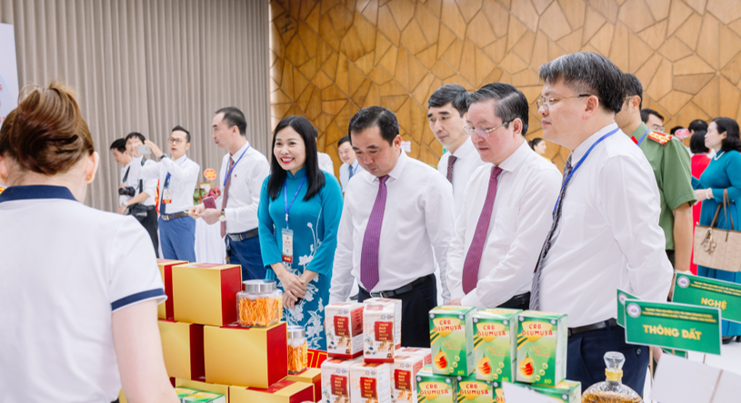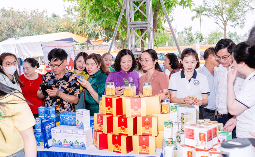 Đồng chí Trần Đức Thắng, Ủy viên BCH TW Đảng, Bí thư Tỉnh ủy Hải Dương thăm quan gian hàng trưng bày sản phẩm KHCN của nhà trường năm 2023