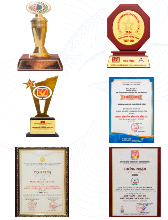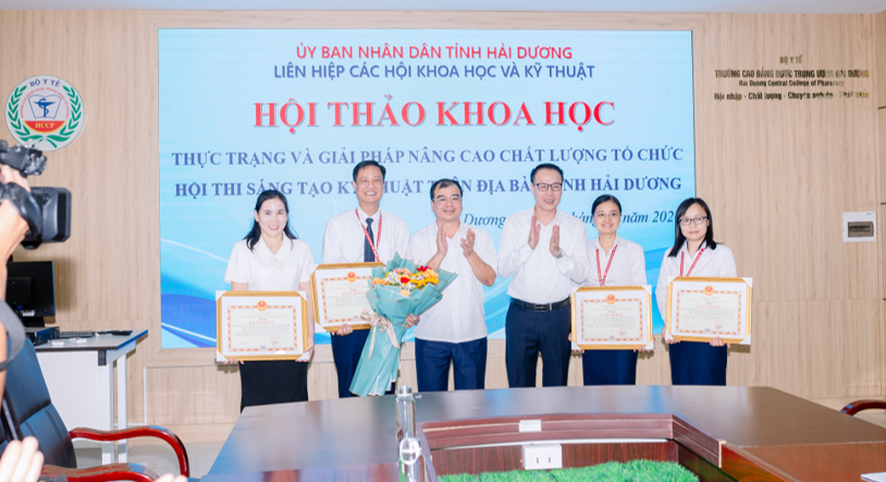 Năm học 2024 - 2025: tại Hội thi sáng tạo Khoa học kỹ thuật tỉnh Hải Dương, Đề tài “Nghiên cứu phát triển sản phẩm hỗ trợ hạ đường huyết và tăng cường miễn dịch từ đông trùng hạ thảo (Cordyceps Militaris) nuôi trồng tại Hải Dương” của Ths. Nguyễn Thị Huyền và “Nghiên cứu sản xuất cốm vi sinh từ hai chủng lợi khuẩn Bacillus subtilis & Bacillus clausii phân lập trên địa bàn tỉnh Hải Dương” của TS. Nguyễn Thị Hường đạt giải Nhì; Đề tài “Nghiên cứu bào chế viên nang cứng từ dược liệu tỏi có tác dụng chống oxy hóa, bảo vệ tế bào gan” của DSCKII. Nguyễn Thị Thanh Nhài và “Nghiên cứu bào chế dung dịch xịt hỗ trợ điều trị tổn thương da từ nano bạc và một số dược liệu trên địa bàn tỉnh Hải Dương” của TS. Trần Bá Kiên đạt giải Ba.