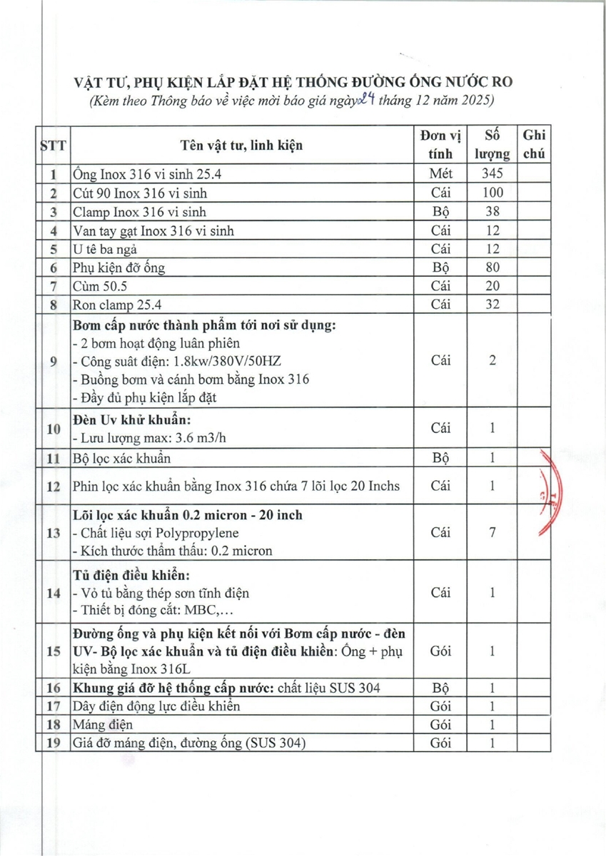 THÔNG BÁO VỀ VIỆC MỜI BÁO GIÁ NGÀY 18 THÁNG 8 NĂM 2025