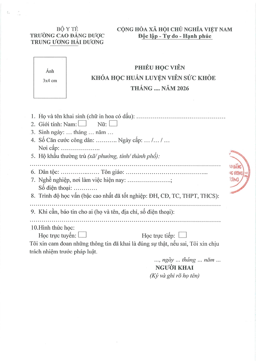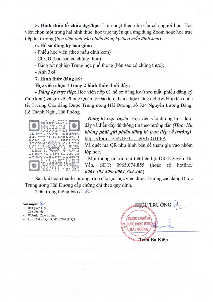 Thông báo v/v nhập học ngành Dược, trình độ cao đẳng, đợt T3/2026