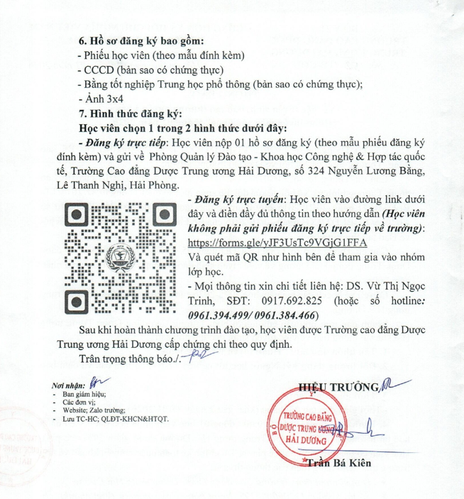 Thông báo v/v mở lớp "Đào tạo, cập nhật kiến thức chuyên môn về dược tháng 01/2026