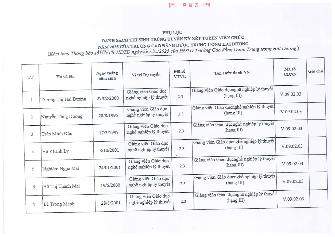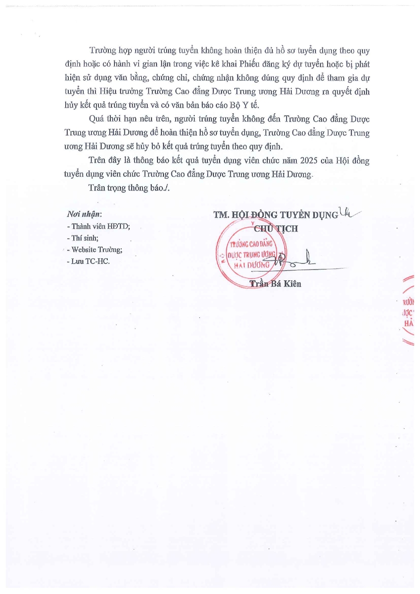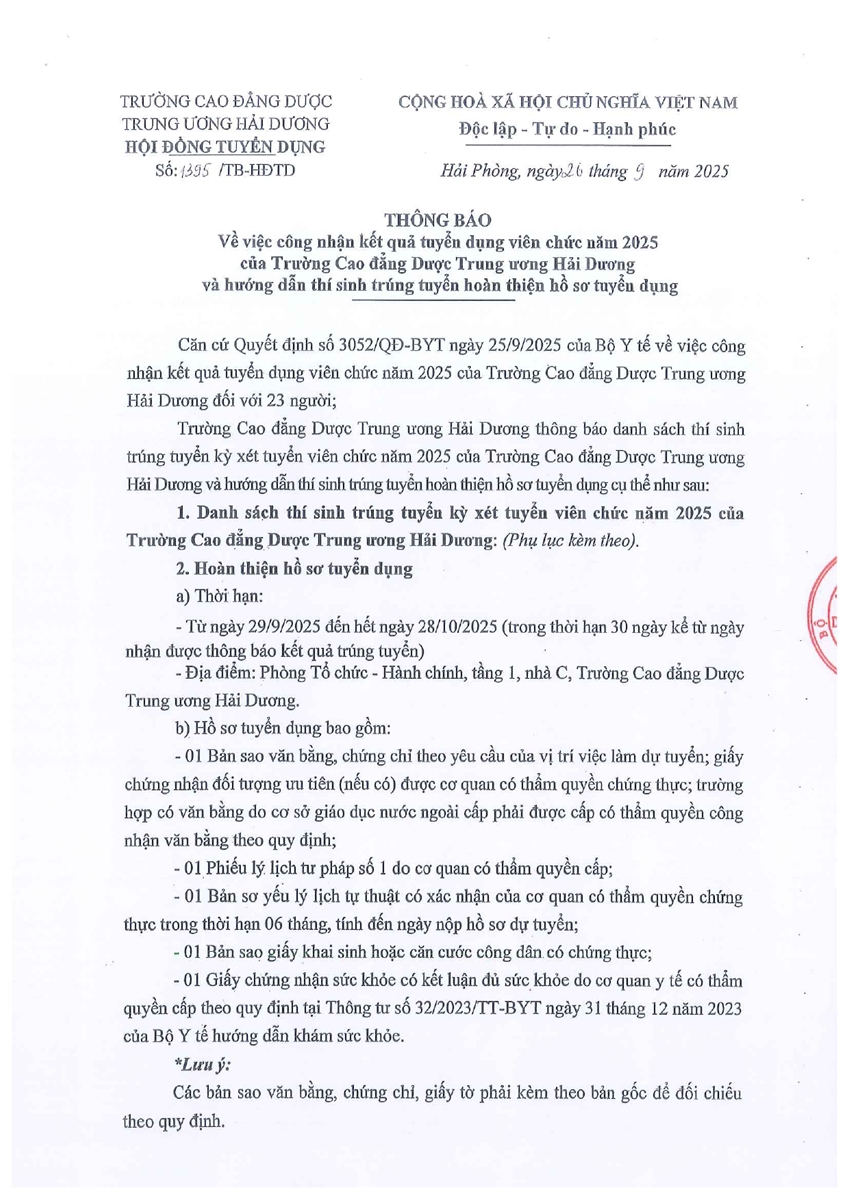 THÔNG BÁO VỀ VIỆC CÔNG NHẬN KẾT QUẢ TUYỂN DỤNG VIÊN CHỨC NĂM 2025