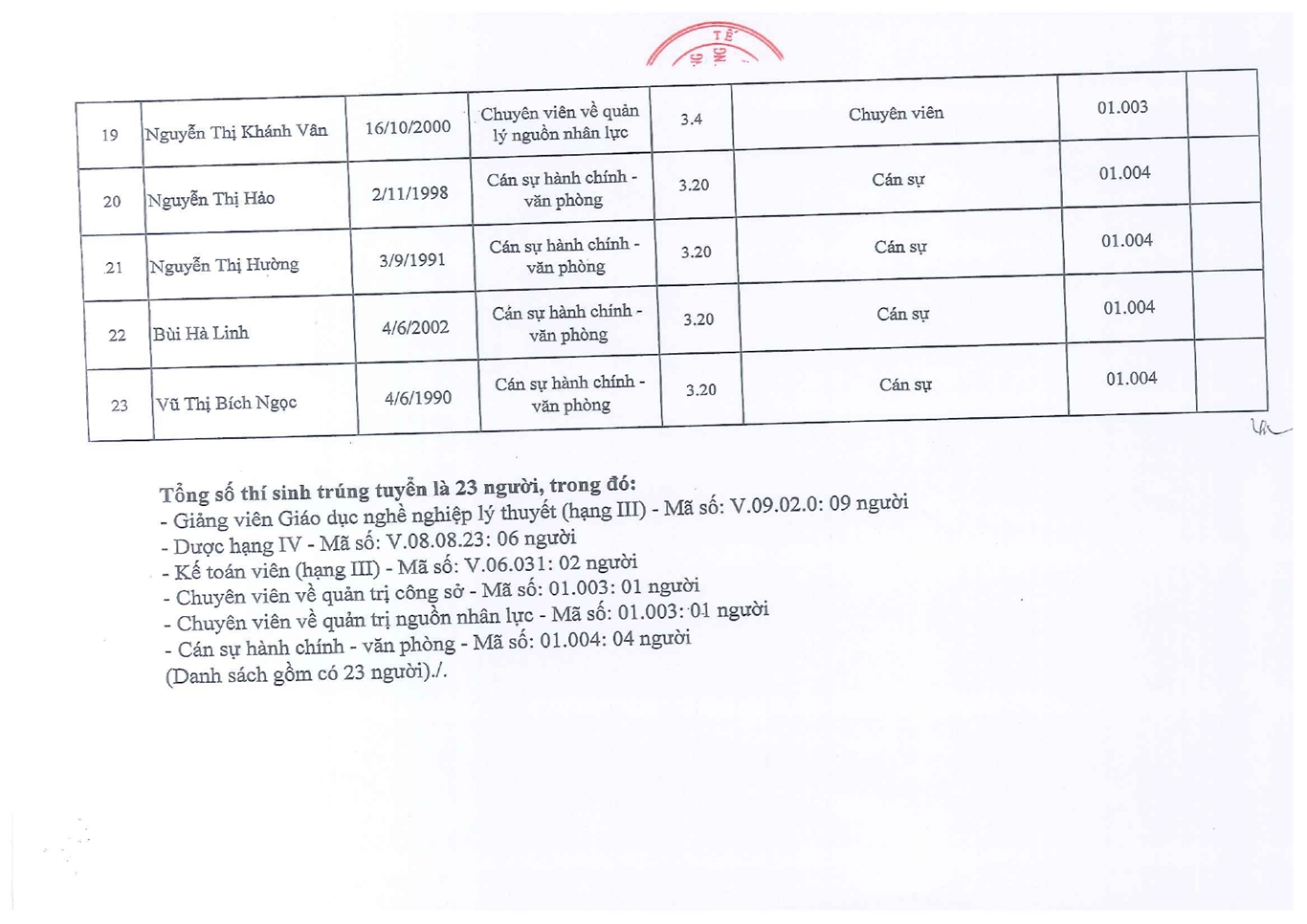 THÔNG BÁO KẾT QUẢ THI PHỎNG VẤN VÒNG 2 KỲ XÉT TUYỂN VIÊN CHỨC NĂM 2025