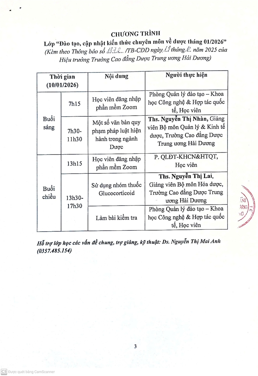 Thông báo v/v mở lớp "Đào tạo, cập nhật kiến thức chuyên môn về dược tháng 01/2026