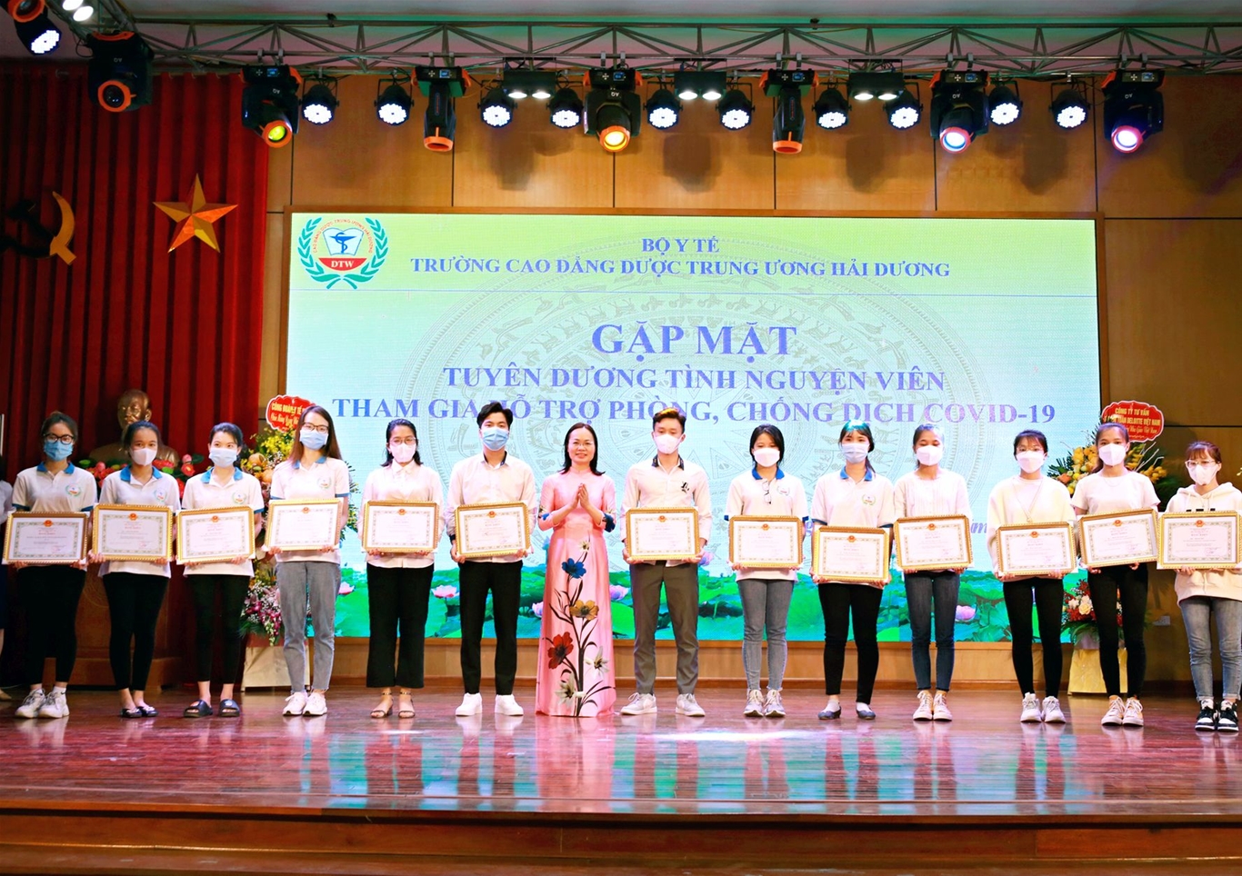 Sáng 17/11/2021, tại Hội trường lớn, Trường Cao đẳng Dược Trung ương Hải Dương đã long trọng tổ chức buổi gặp mặt, tuyên dương tình nguyện viên tham gia hỗ trợ phòng, chống dịch COVID-19 (gọi tắt là phòng, chống dịch).