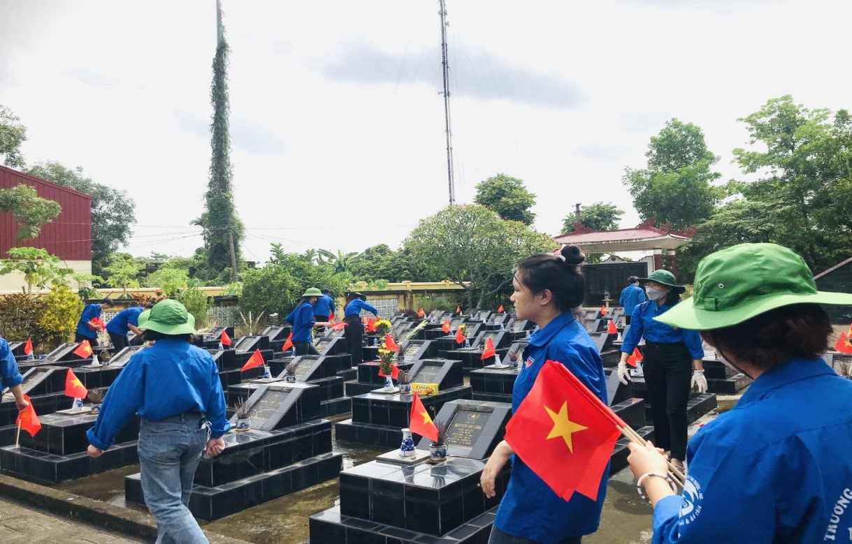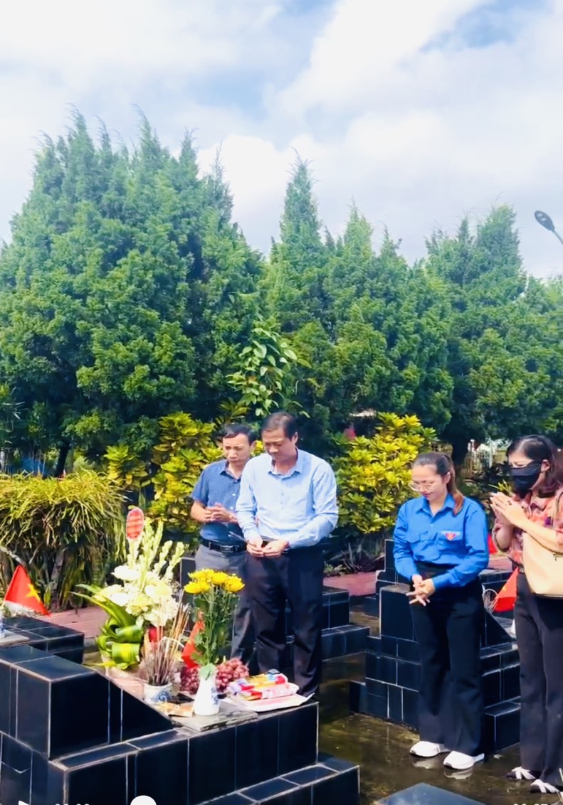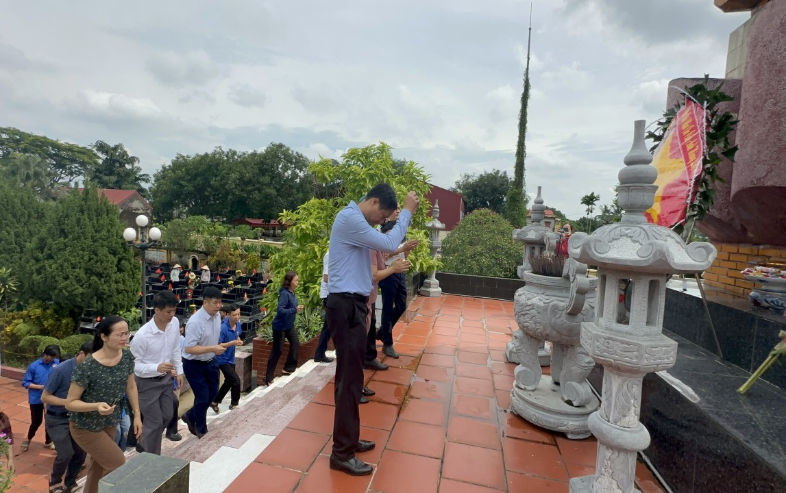 Đại diện Đảng ủy, BGH và các tổ chức đoàn thể làm lễ dâng hương tưởng niệm các Anh hùng liệt sĩ tại nghĩa trang liệt sĩ xã Thanh Hải, huyện Thanh Hà, tỉnh Hải Dương