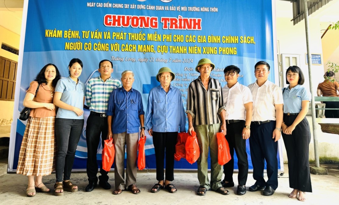 Đại diện Đảng ủy, BGH và các tổ chức đoàn thể, các doanh nghiệp hợp tác với nhà trường tặng và phát thuốc miễn phí cho các gia đình chính sách, người có công tại xã Thăng Long, Kinh Môn, Hải Dương