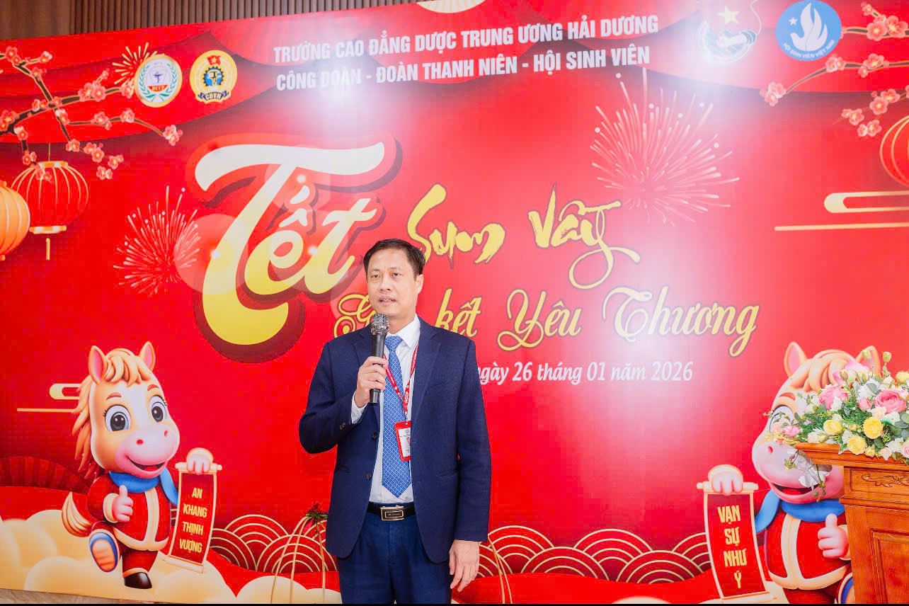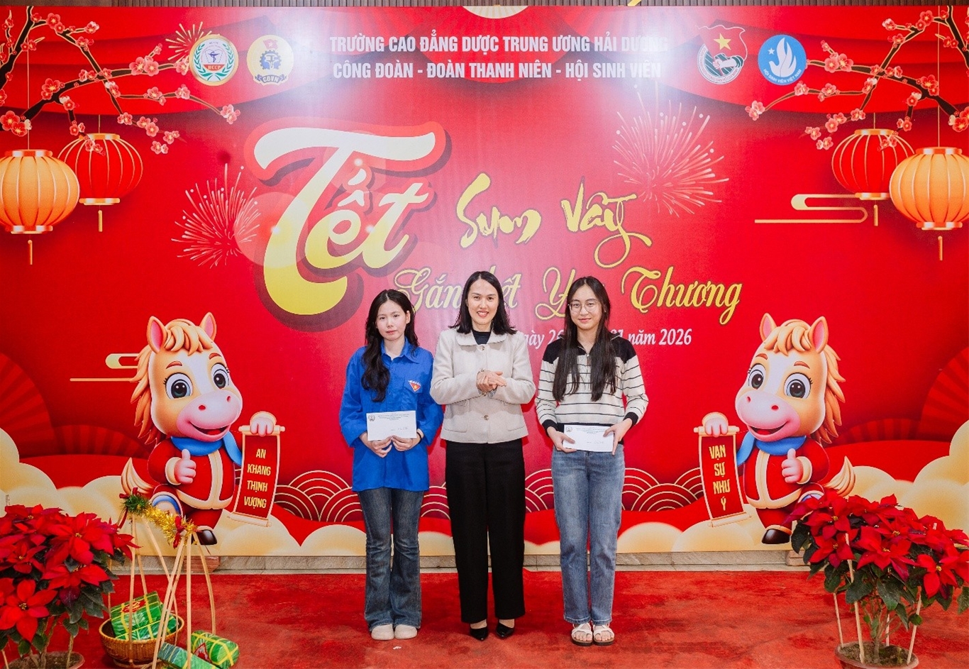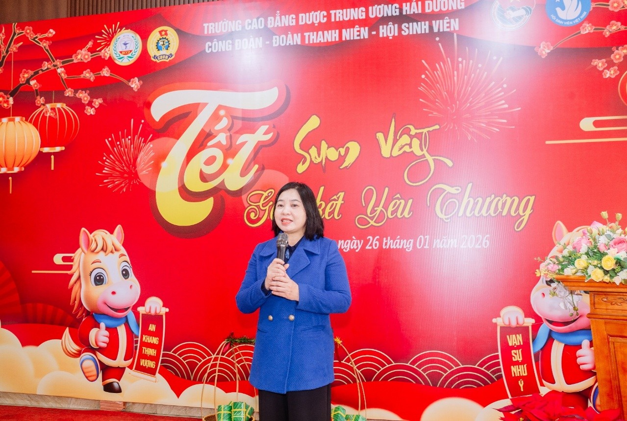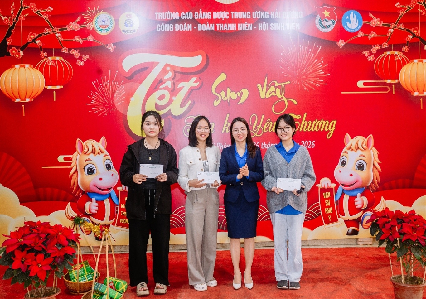 Trong không khí rộn ràng chào đón Tết cổ truyền của dân tộc - Tết Nguyên đán Bính Ngọ 2026, phát huy vai trò phối hợp của các tổ chức đoàn thể trong các hoạt động chăm lo cho đời sống của công đoàn viên, đoàn viên thanh niên, học sinh, sinh viên trong toàn trường. Chiều ngày 26/01/2026, Ban Chấp hành Công đoàn Trường và Đoàn Thanh niên Cộng sản Hồ Chí Minh Nhà trường đã phối hợp tổ chức Chương trình “Tết sum vầy - Gắn kết yêu thương” trong không khí đầm ấm, vui tươi, thăm đượm nghĩa tình.