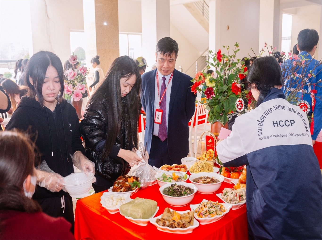 Ngay sau hoạt động gói bánh chưng là Hội thi “Trình bày mâm cơm ngày Tết”. Tham gia Hội thi có 16 đội đến từ các phòng, bộ môn, trung tâm và 17 đội đến từ các khóa, lớp học sinh, sinh viên. Với chủ đề “Mâm cơm ngày Tết”, các đội đã chuẩn bị, trình bày những món ăn dân tộc độc đáo. Từ các nguyên liệu mang hương vị đặc trưng ngày Tết cùng với cách bài trí mâm cơm ngày Tết qua những đôi bàn tay khéo léo, tài hoa của các thành viên đội thi đã mang đến những mâm cơm đẹp mắt và hấp dẫn.